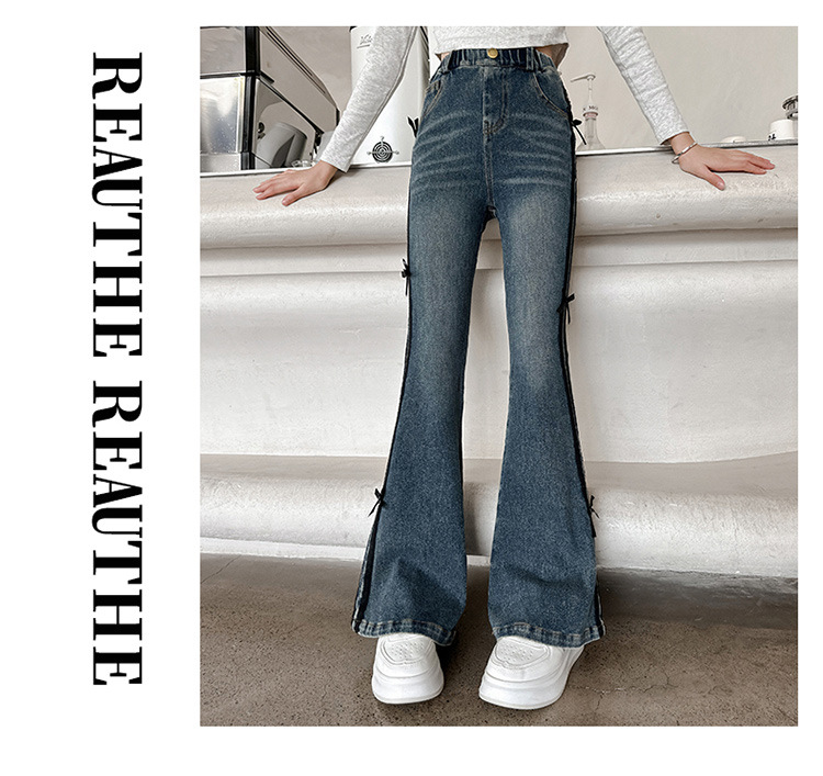 소녀 기모 청바지 2024 새로운 겨울 두꺼운 어린이 겨울 착용 소녀 대형 어린이 마이크로 플레어 바지