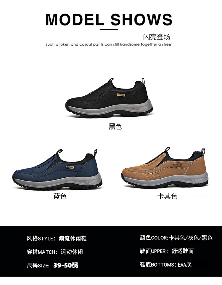 남성 국경 간 플러스 사이즈 야외 신발 걷기 신발 가을/겨울 세트 피트 소프트 단독 캐주얼 게으른 신발 중년 및 노인 미끄럼 방지 아빠 신발