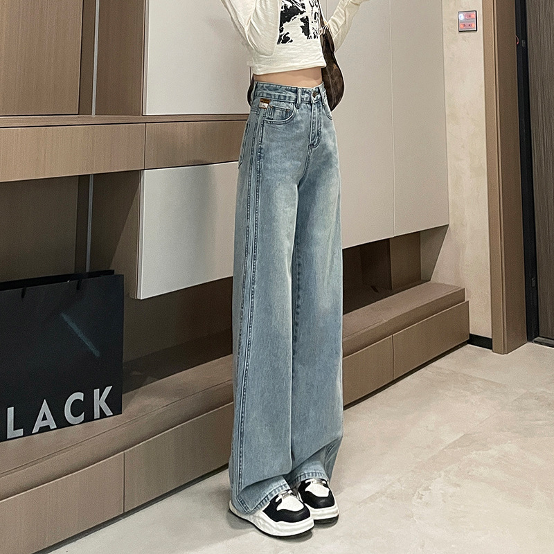 봄과 여름 새로운 청바지 여성의 높은 허리 슬림 넓은 다리 바지 복고풍 편안한 패션 넓은 다리 머리스토어 가기