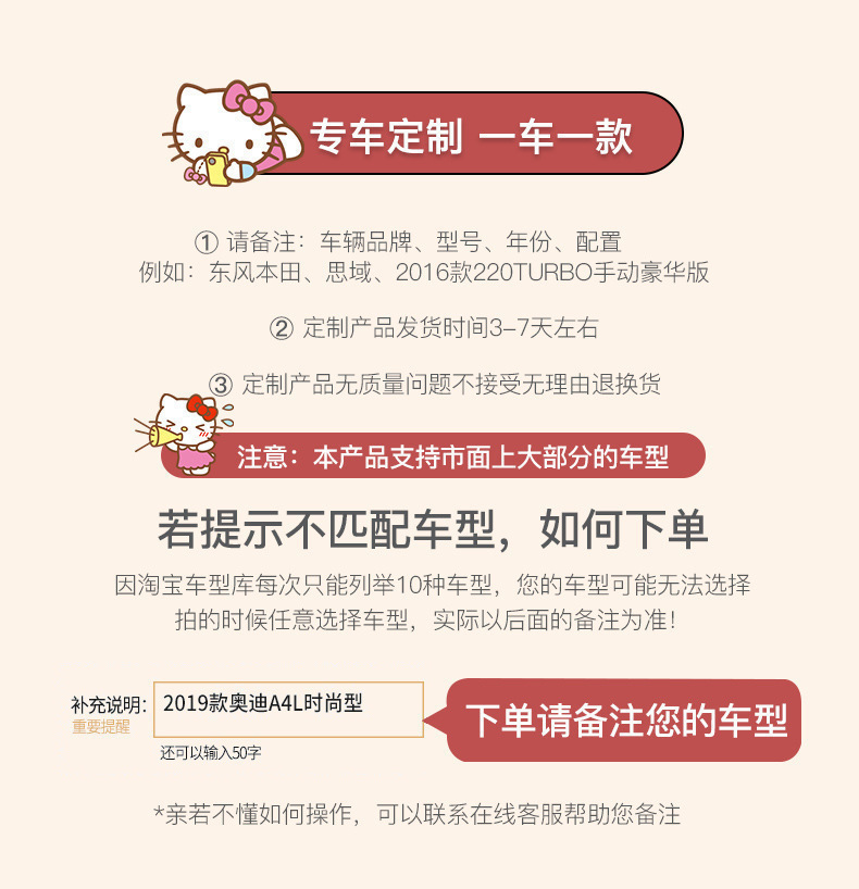 메르세데스-벤츠 BMW 방수 귀여운 꼬리 상자 매트에 적합한 헬로 키티 자동차 자동차 만화 트렁크 매트스토어 가기
