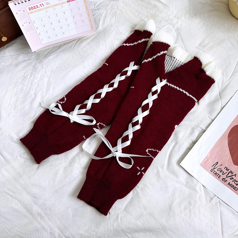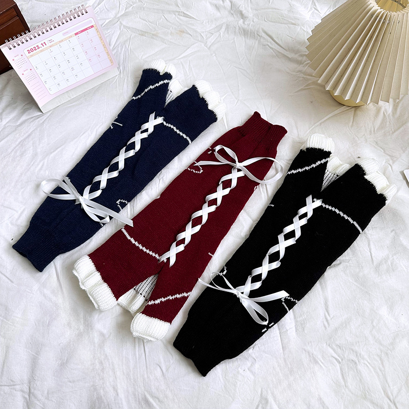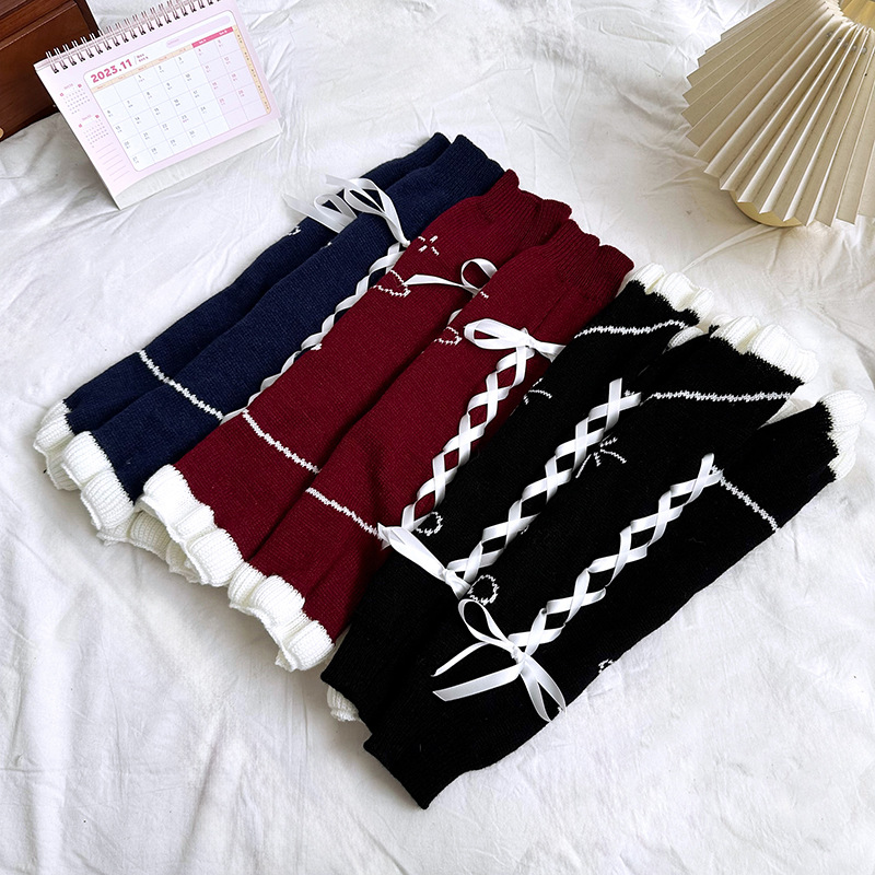 Y2K 하위 문화 새로운 리본 호스피리 랩밴드 드로스트링 JK 소녀 레그 슬리브 로리타 송아지 더미 양말