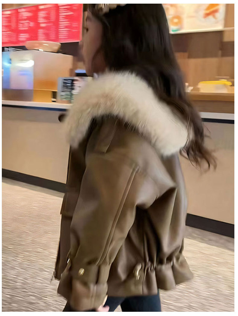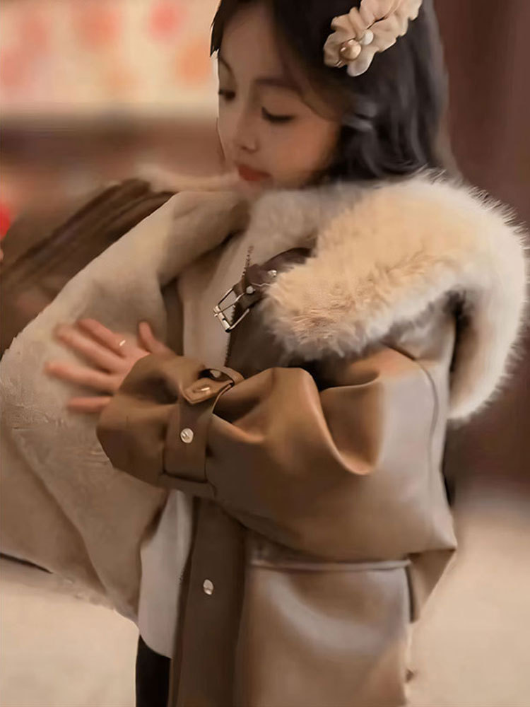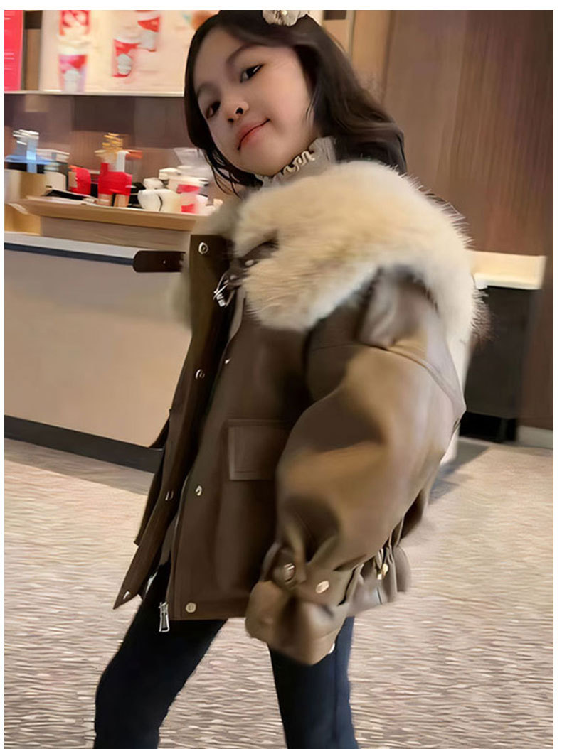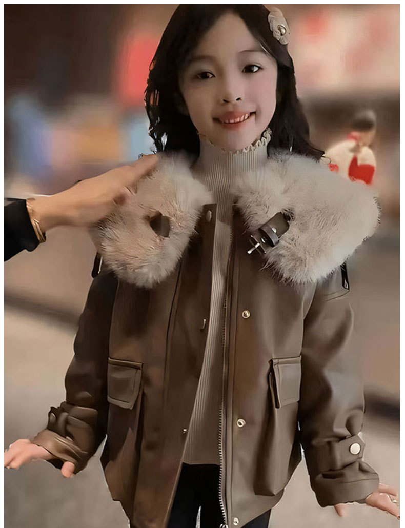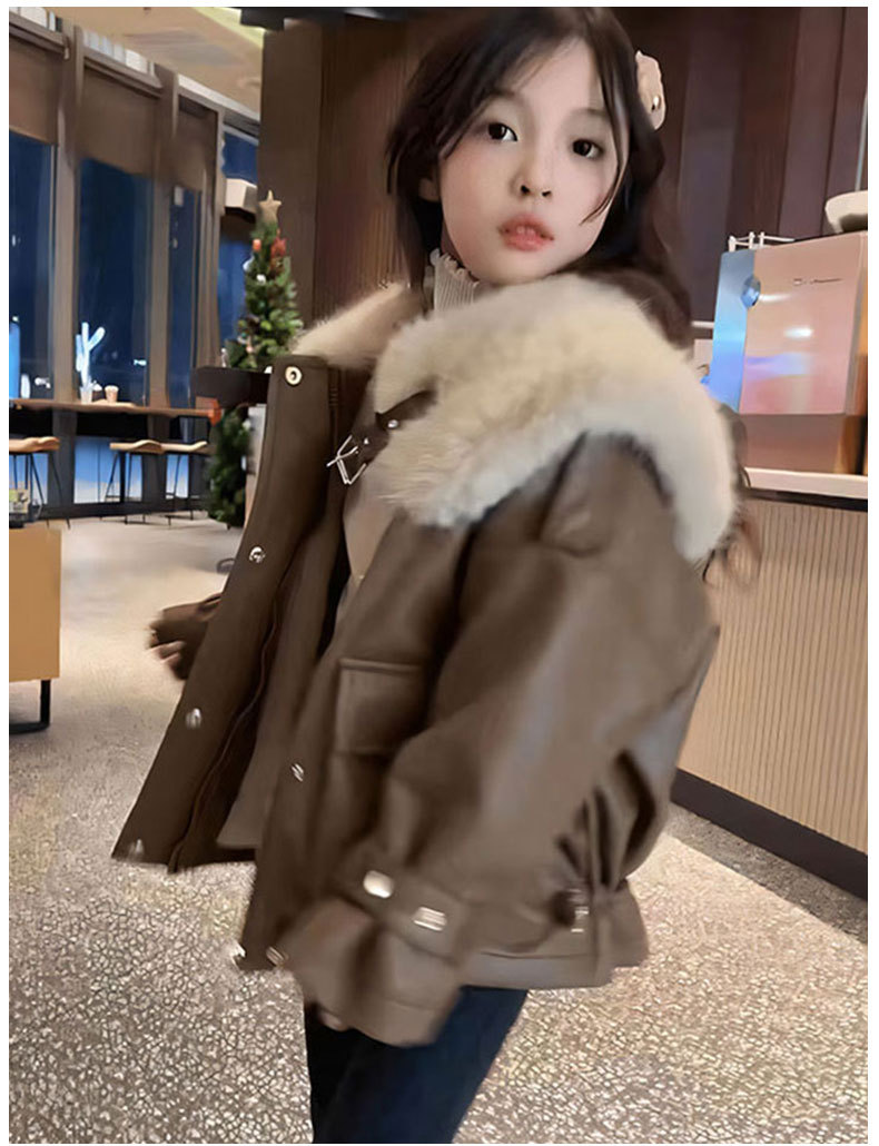 어린이 가죽 코트 가을과 겨울 새로운 스타일 기모 중년 어린이와 소녀를위한 두꺼운 가죽 자켓 모피 칼라 재킷 서양식 겨울 탑스토어 가기