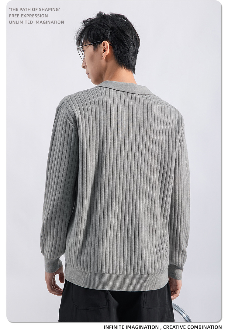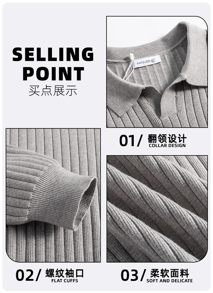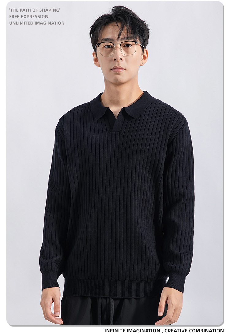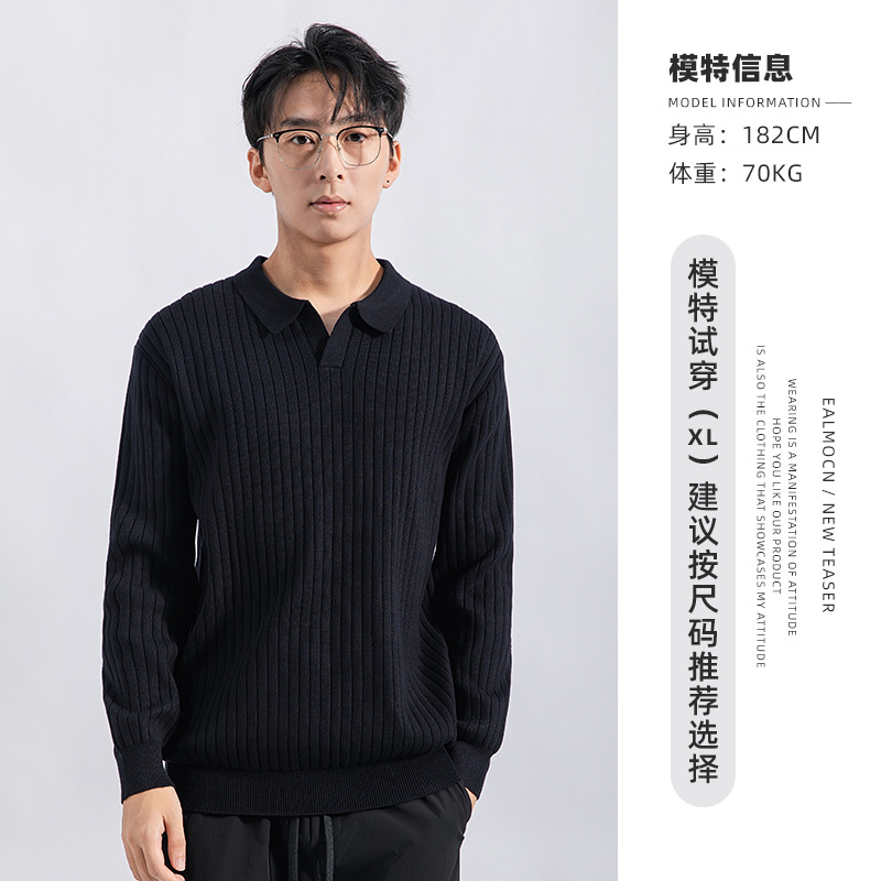 유럽풍 니트 스웨터, 갈매기 칼라, 골지 남성 스웨터, 남성용 라이트 럭셔리 고급 캐주얼 폴로 셔츠스토어 가기