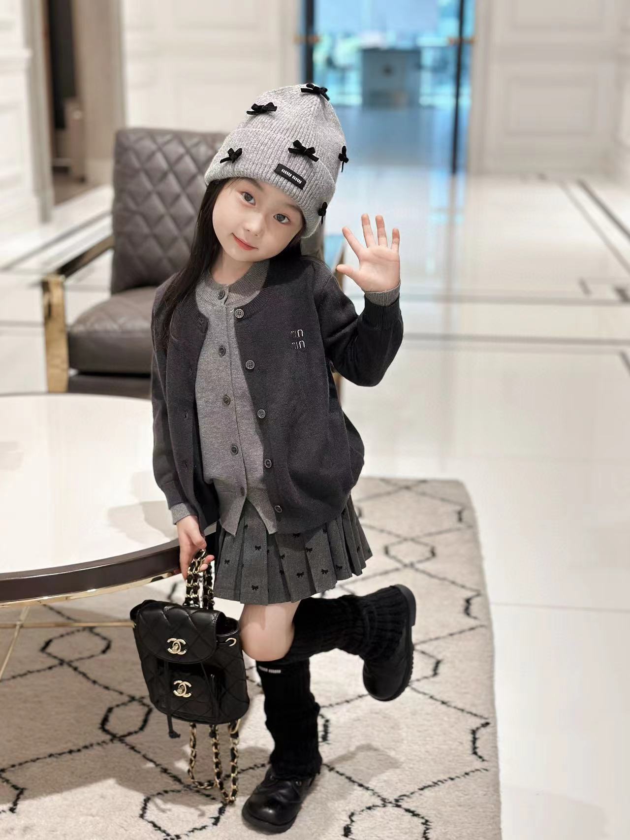 24 가을 새로운 소녀 컬러 매칭 문자 자수 가짜 두 카디건 활 오버 스커트 올 매치