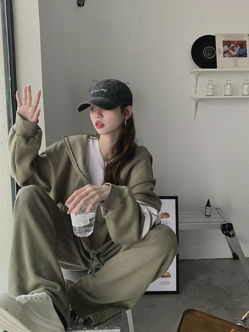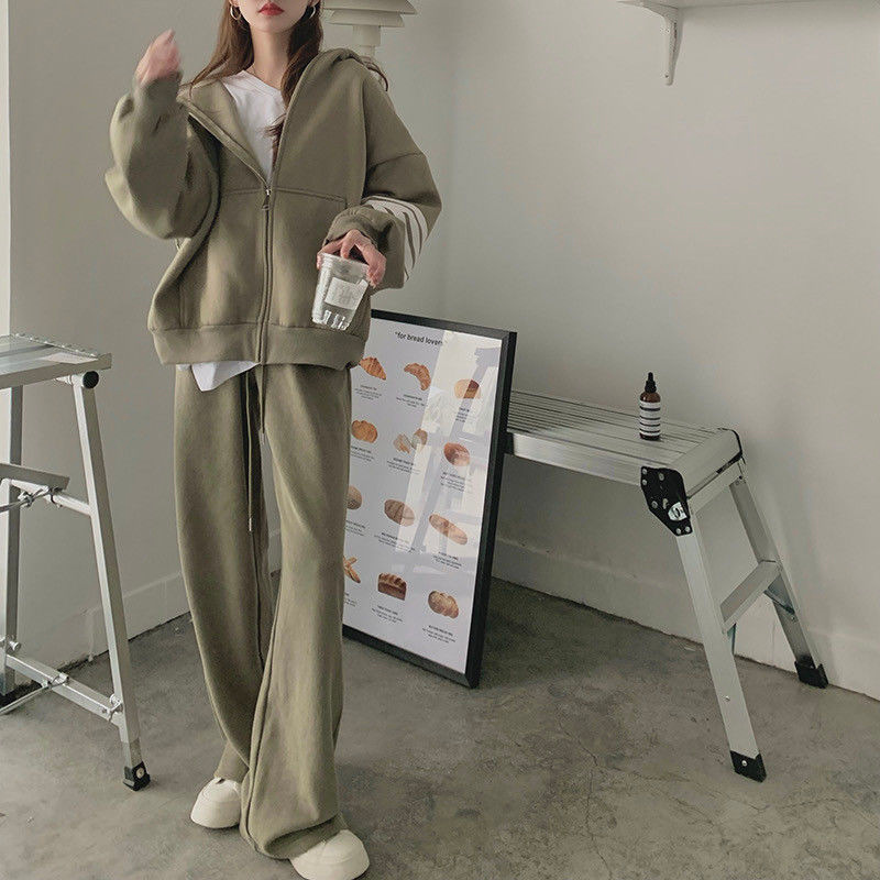 인터넷 연예인 스포츠웨어 세트 여성의 봄과 가을 학생의 한국식 루즈 후드 스웨트 패션 러닝 캐주얼 투피스 세트