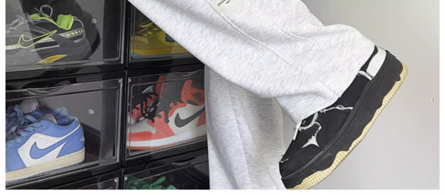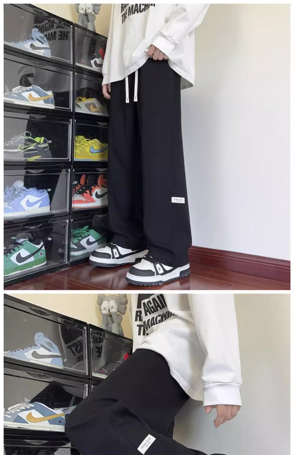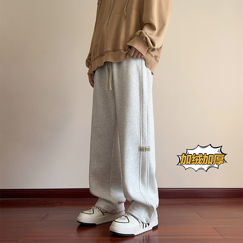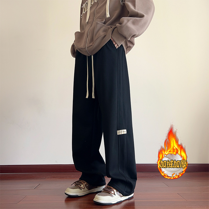 미국식 힙합 바지 남성 가을과 겨울 패션 브랜드 하이 스트리트 올 매치 캐주얼 팬츠 기모 두꺼운 스트레이트 스포츠 와이드 레그 팬츠스토어 가기