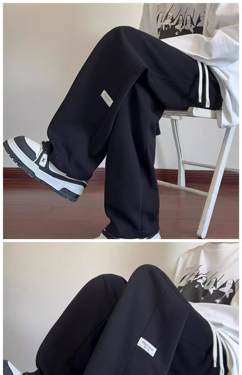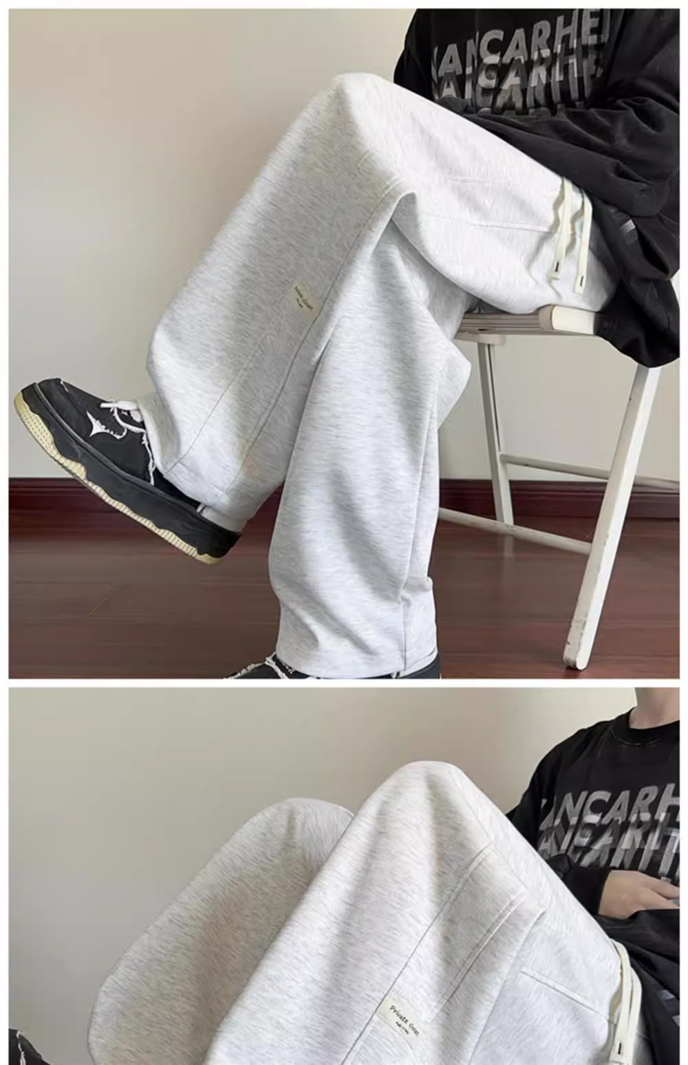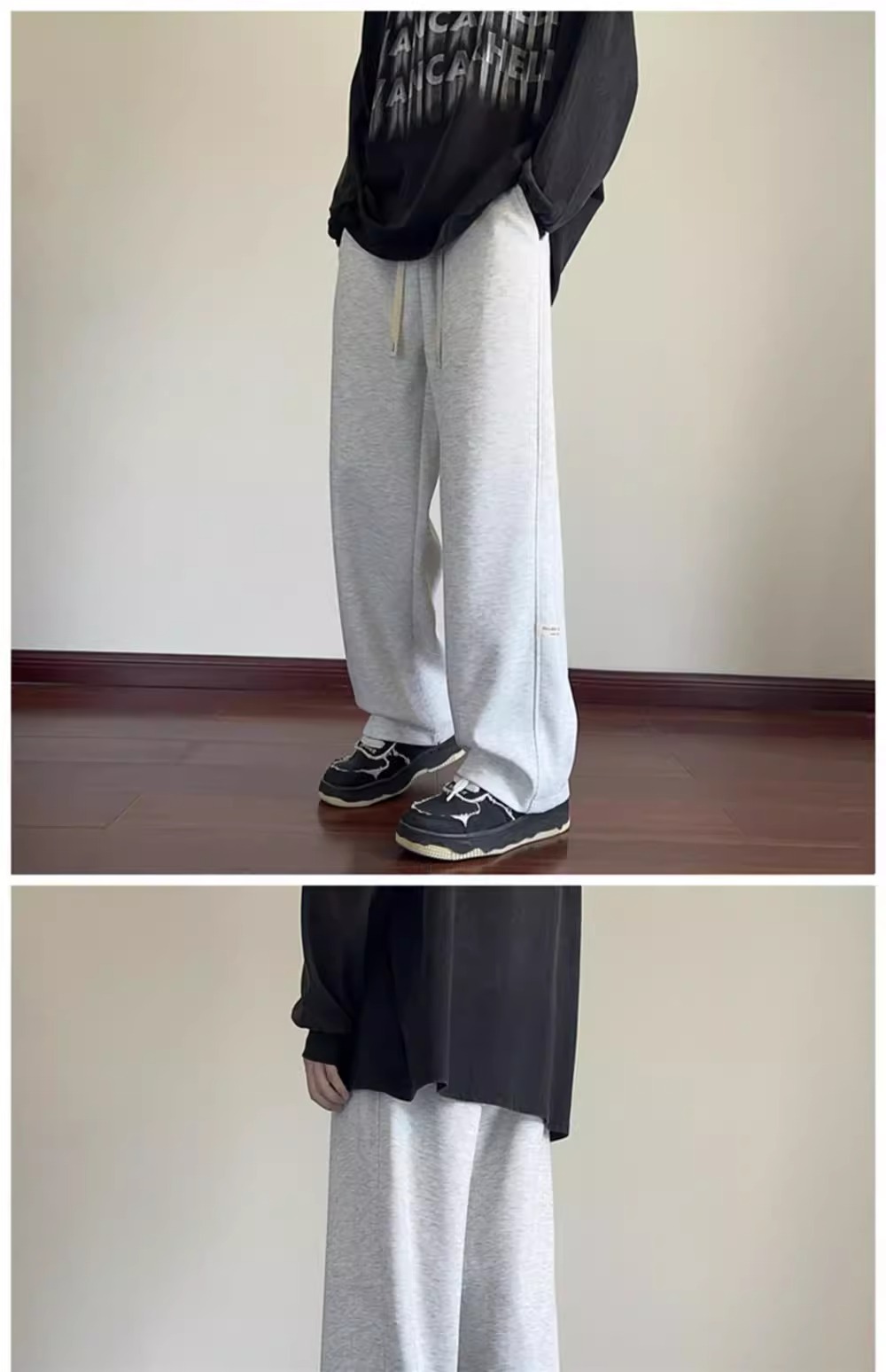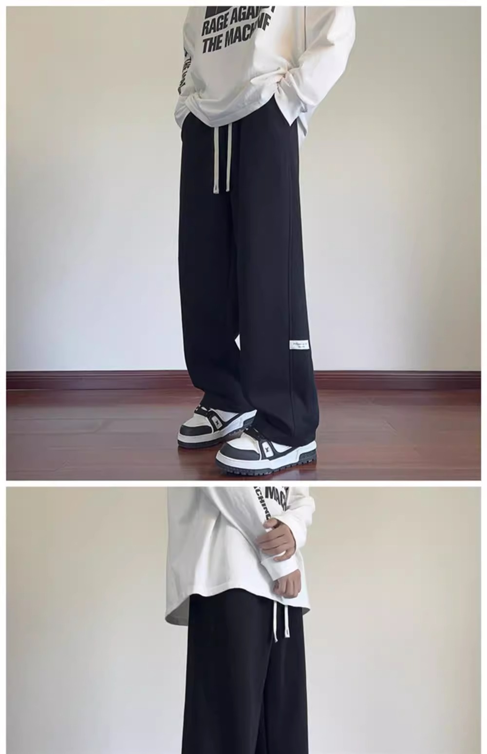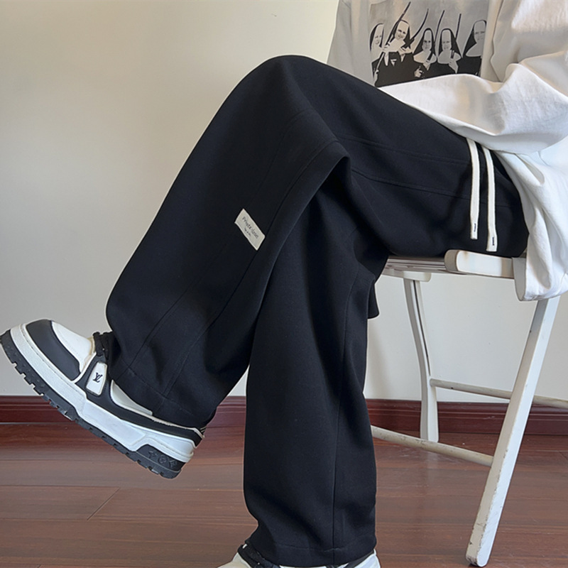 미국식 힙합 바지 남성 가을과 겨울 패션 브랜드 하이 스트리트 올 매치 캐주얼 팬츠 기모 두꺼운 스트레이트 스포츠 와이드 레그 팬츠