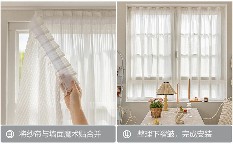 벨크로 커튼 펀치 무료 설치 거즈 커튼 투명한 부러워하는 발코니 거즈 베이 창 거즈 화이트 수직 셔터 거즈스토어 가기