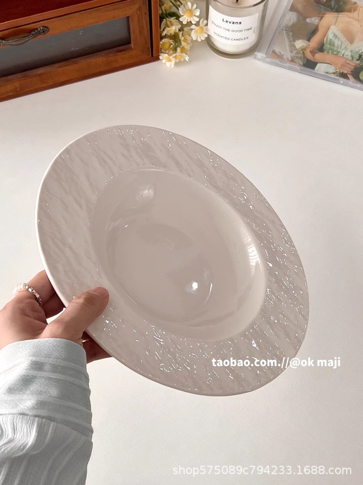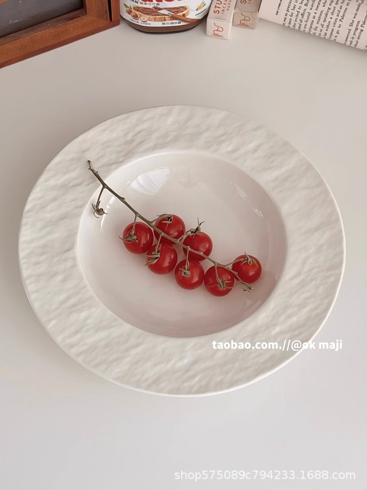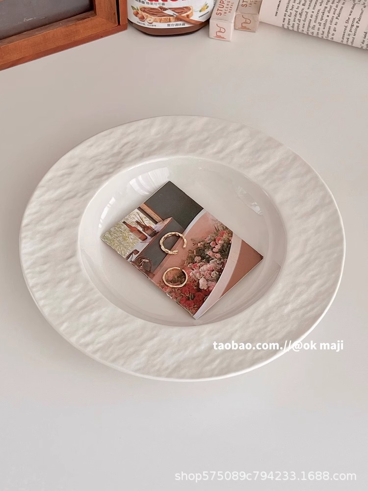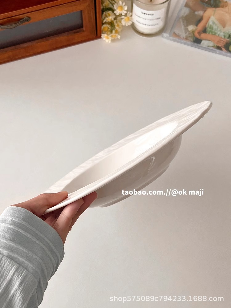 OK maji 일본식 고급 요리 가정용 파스타 밀짚 모자 요리 수프 플레이트 세라믹 흰색 접시 디너 플레이트스토어 가기