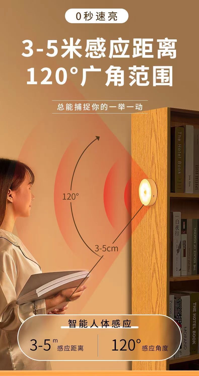 Led 지능형 인체 유도 라이트 야간 조명 캐비닛 침대 옆 홈 라이트 침실 usb 충전 조명 제어 야간 조명스토어 가기