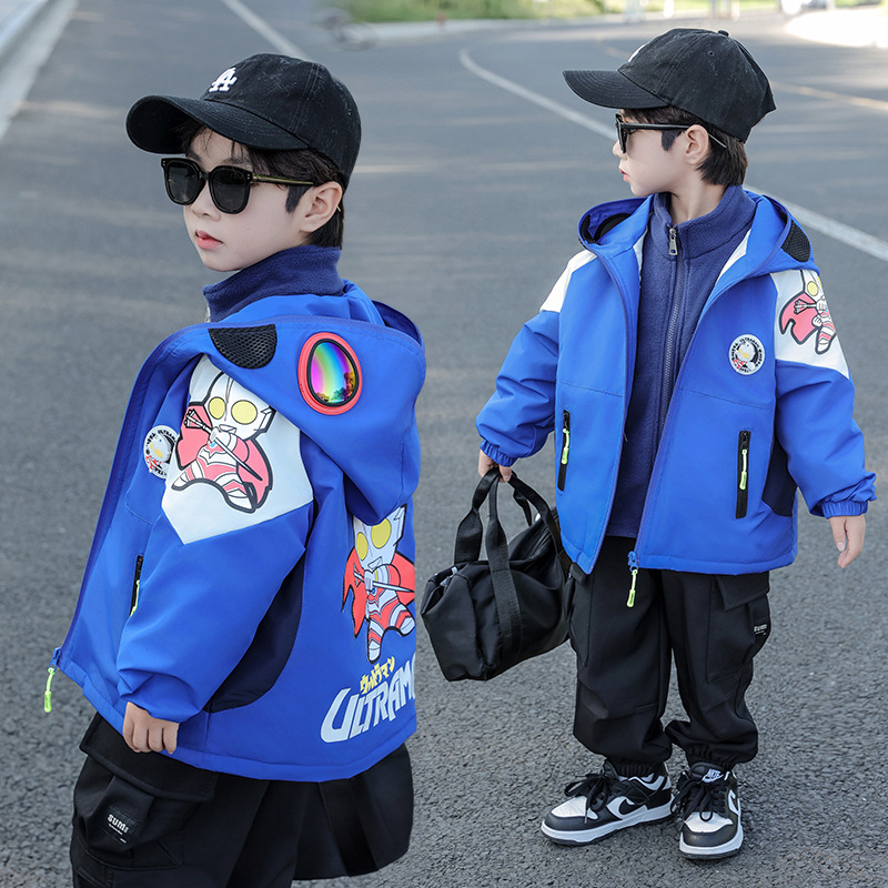 울트라맨 의류 남아용 재킷 어린이 2025년 신상 가을 겨울 한국판 탈부착 가능한 3-in-1 패딩 재킷