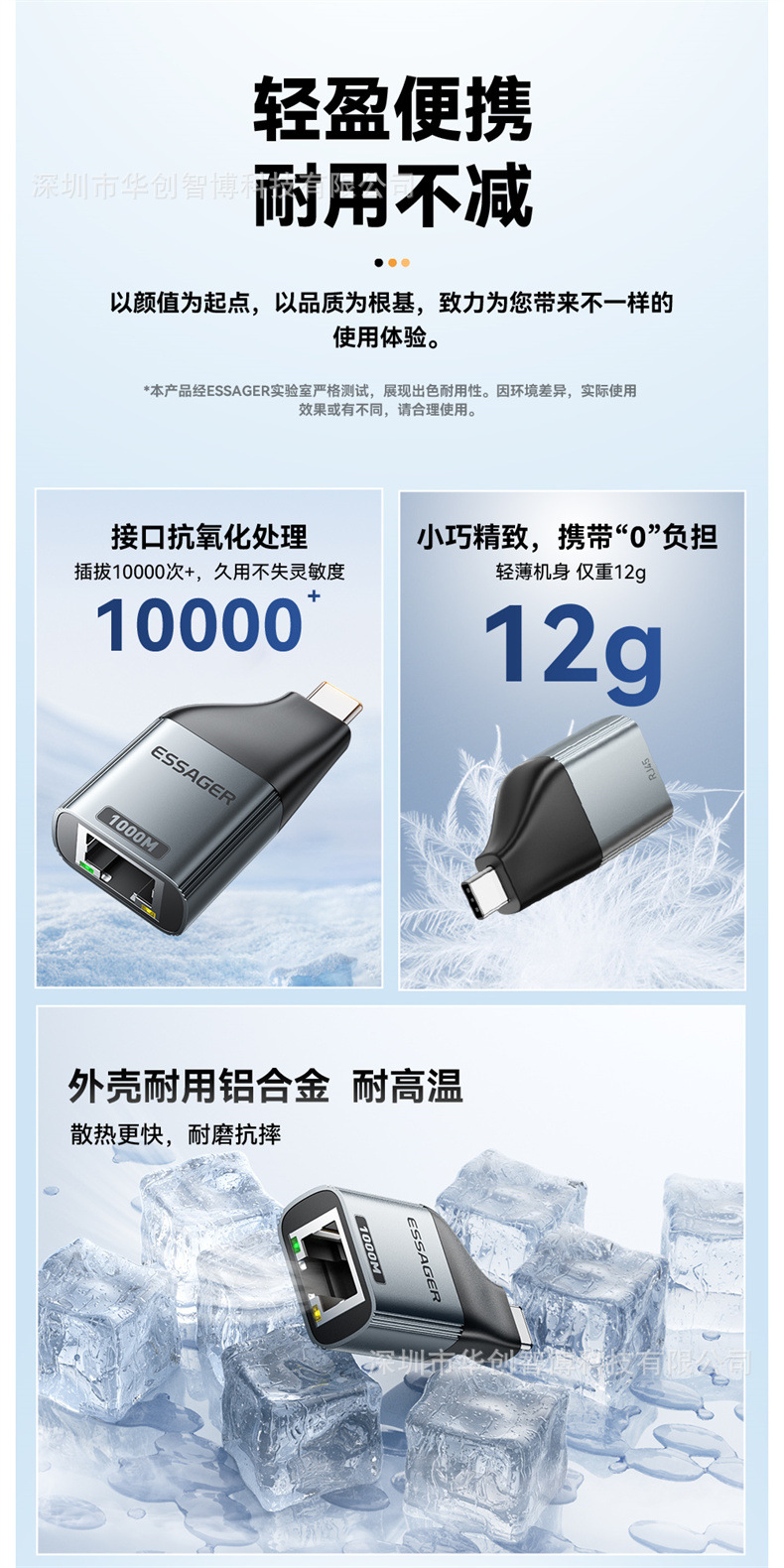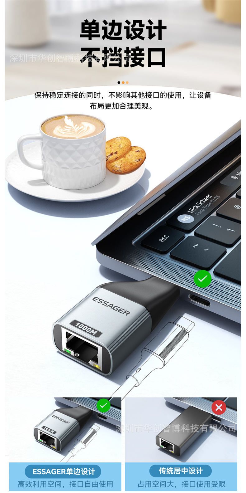 【产品特点】智能芯片,即插即用,免驱动,网口扩展,单边设计,铝合金外壳。