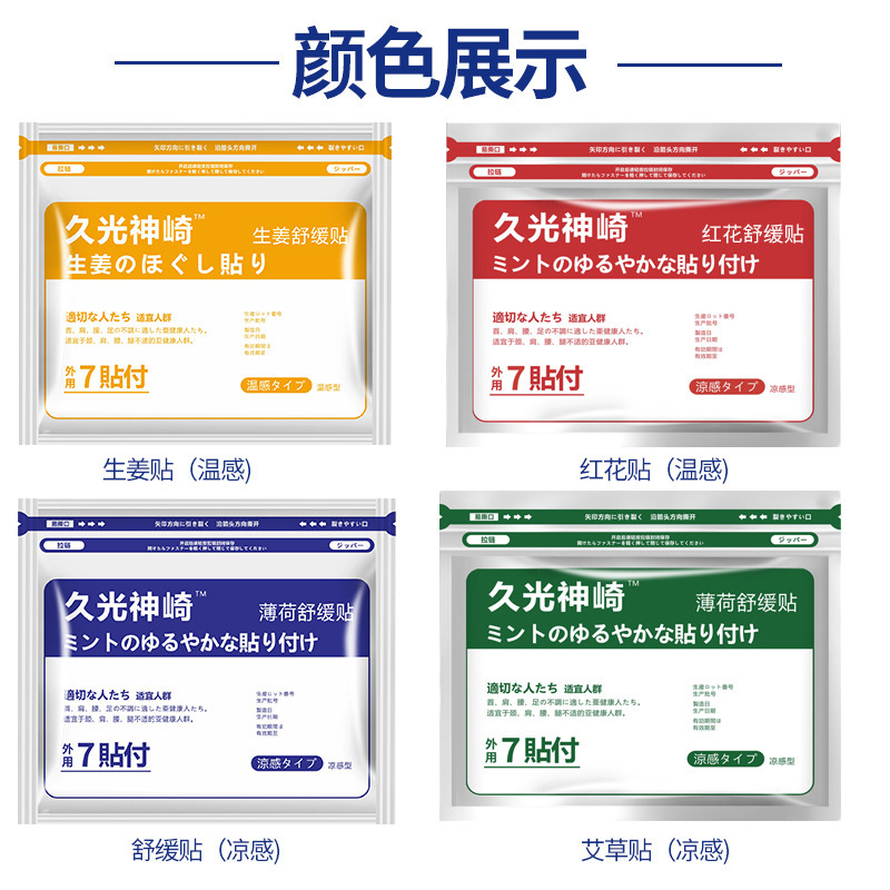 Jiuguang 석고 패치 일본식 제조업체 Douyin 인기 4면 탄성 천 패치 생강 홍화 근육 진정 패치스토어 가기