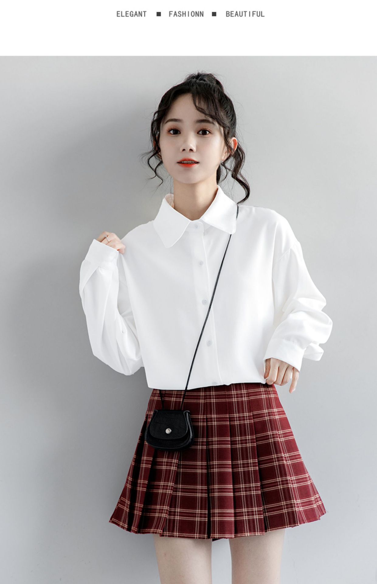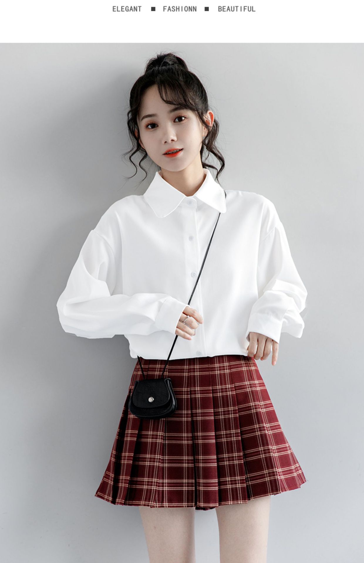 흰색 긴팔 대학 스타일 셔츠 여성의 2024 봄과 가을 학생 캐주얼 올 매치 폴로 칼라 내베이스 탑