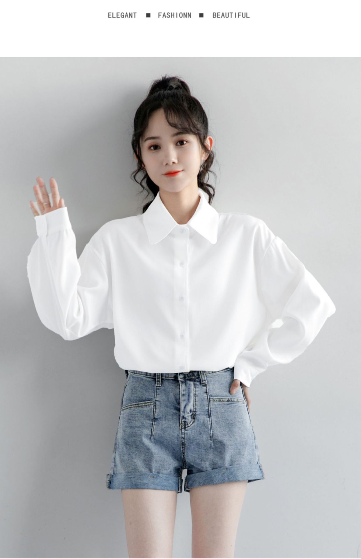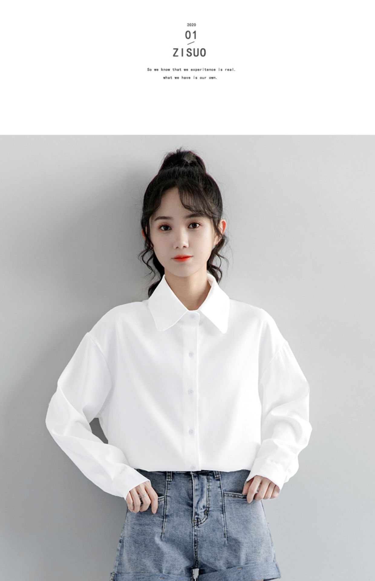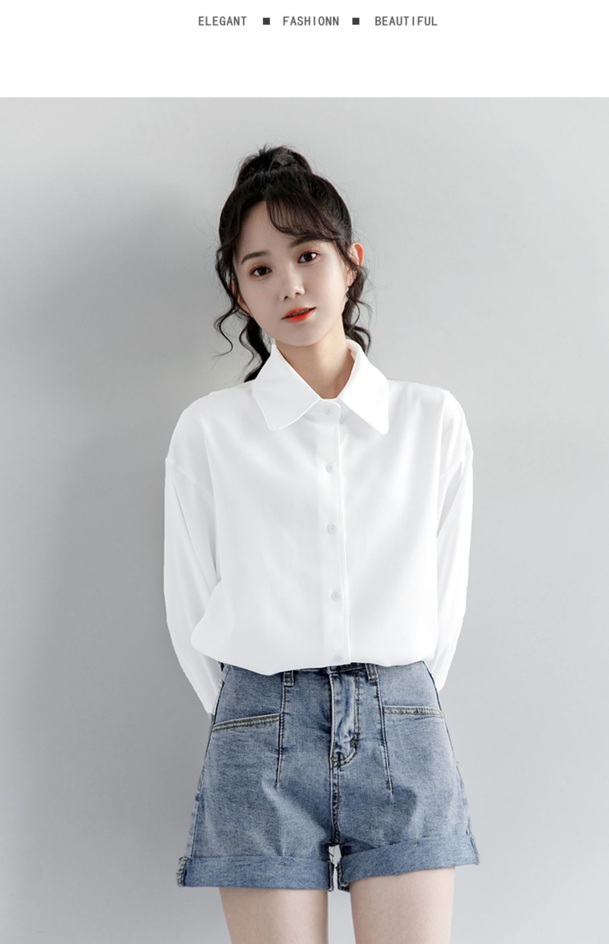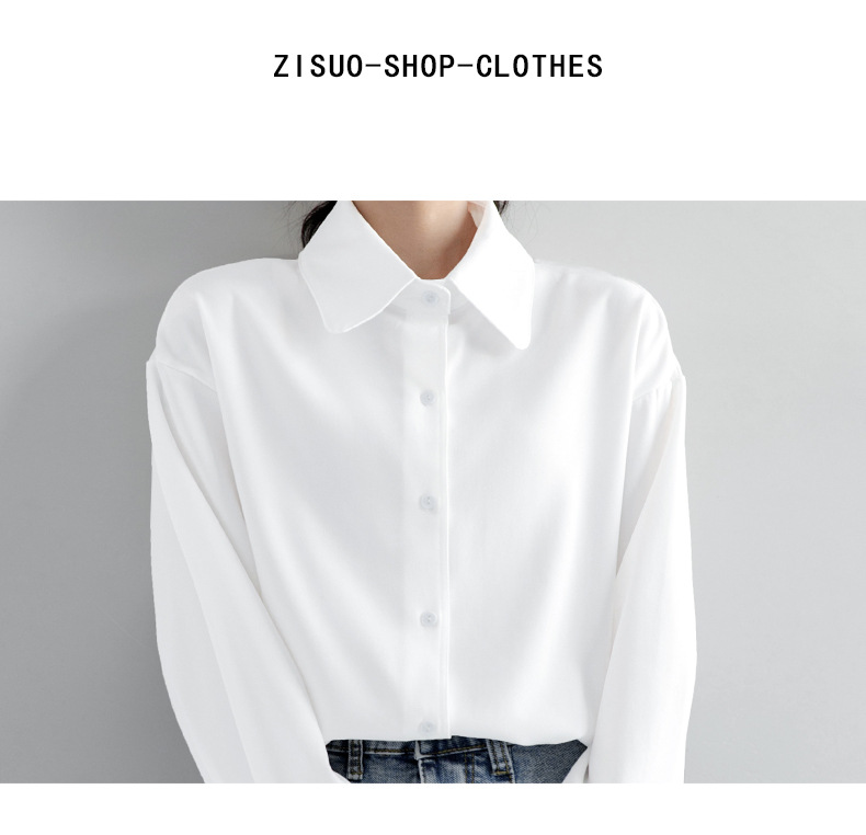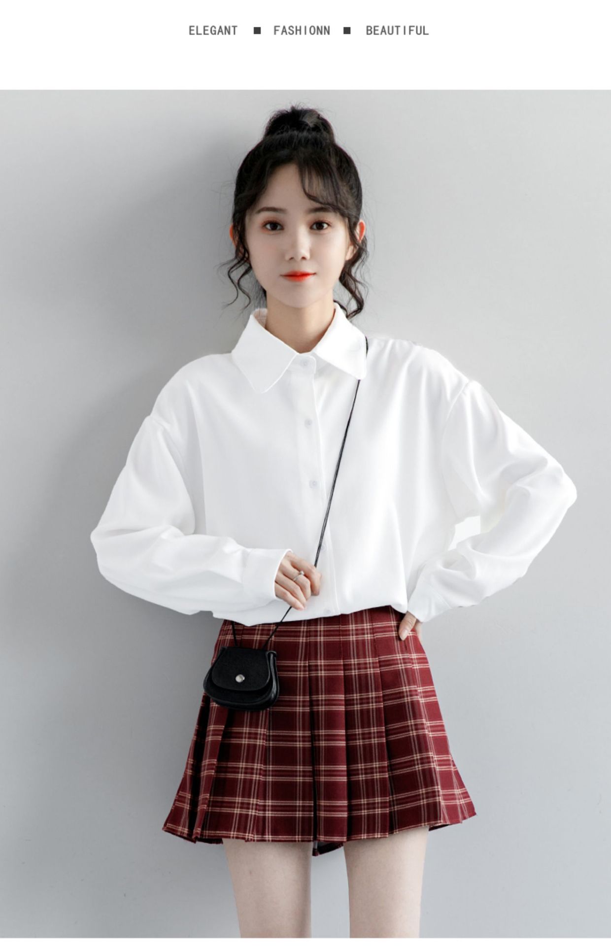 흰색 긴팔 대학 스타일 셔츠 여성의 2024 봄과 가을 학생 캐주얼 올 매치 폴로 칼라 내베이스 탑스토어 가기