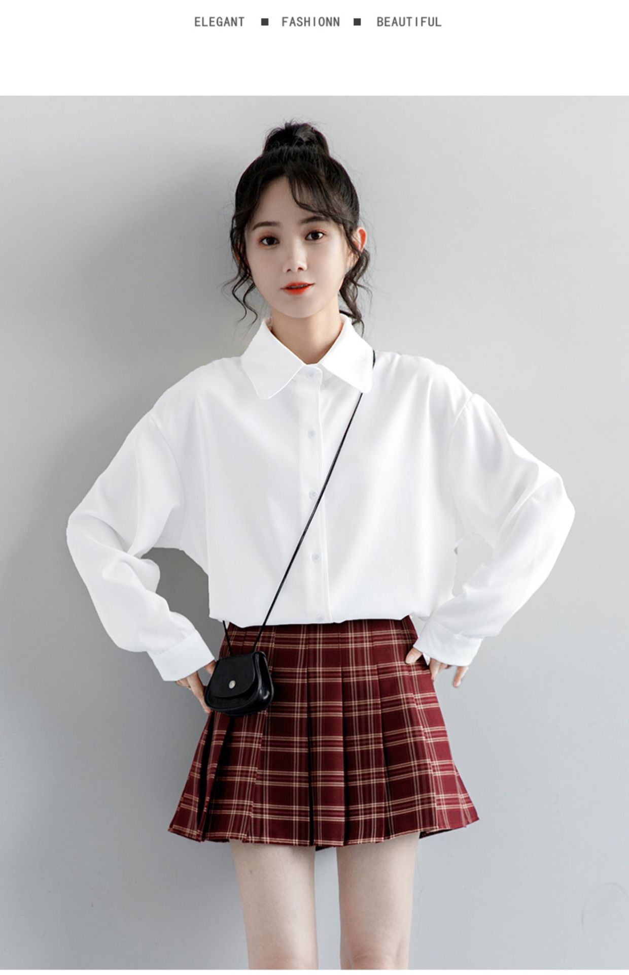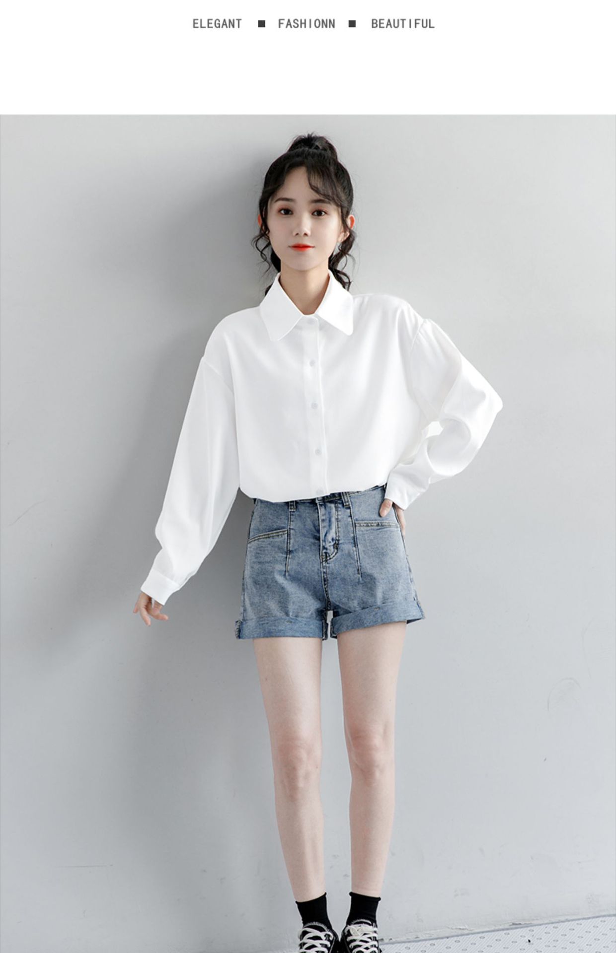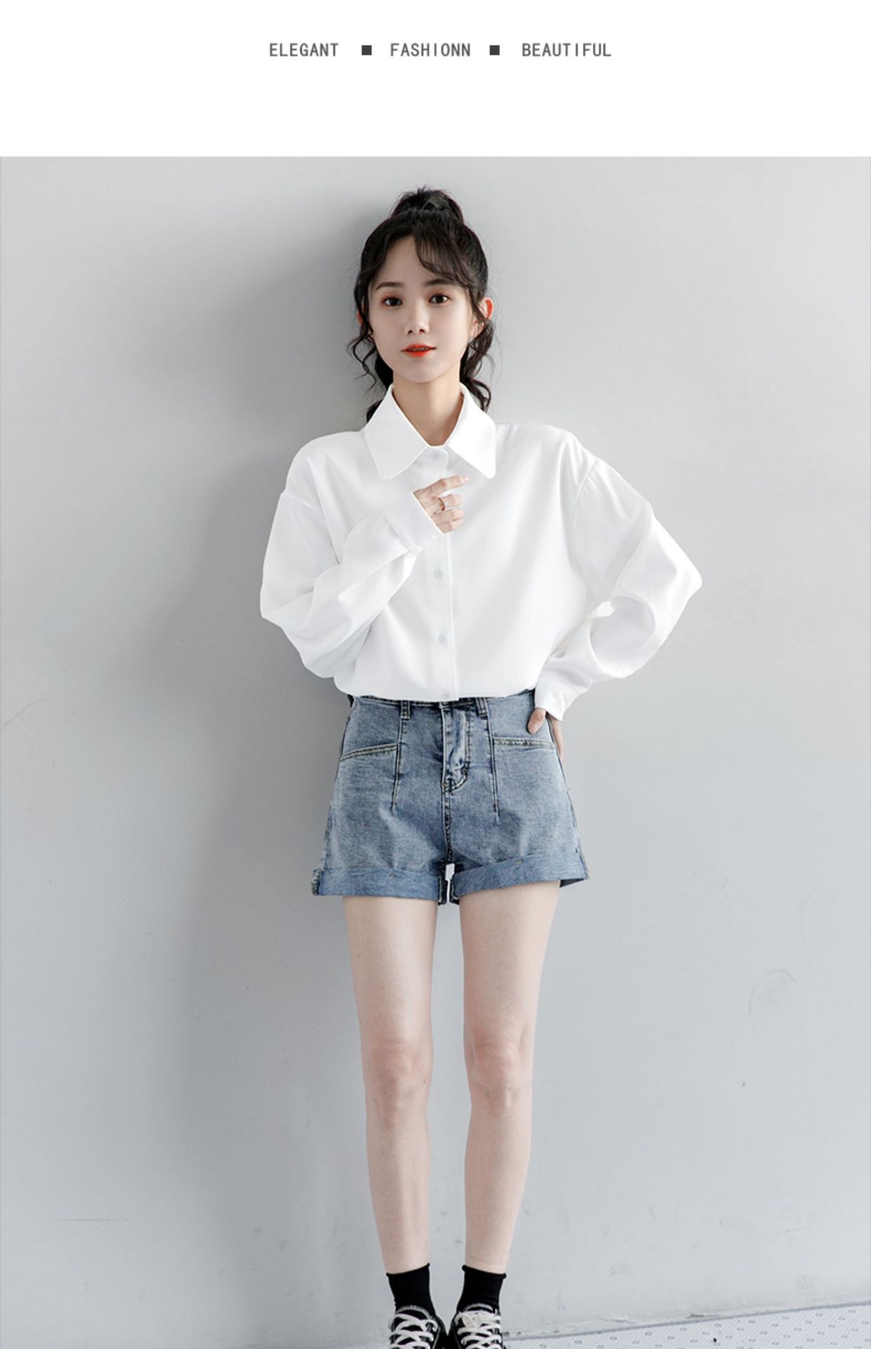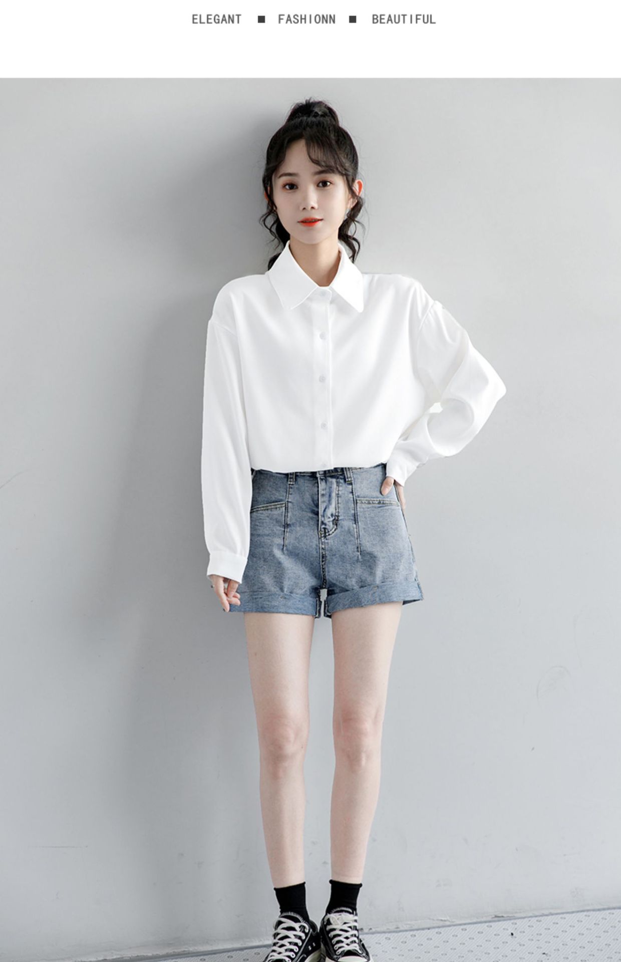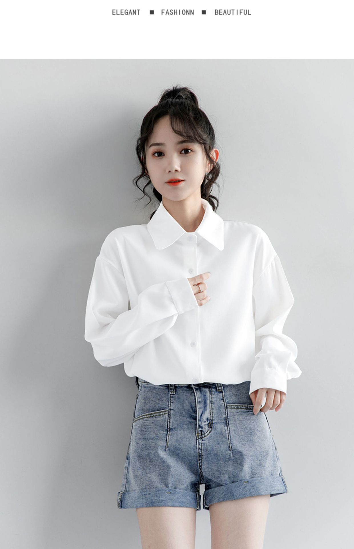 흰색 긴팔 대학 스타일 셔츠 여성의 2024 봄과 가을 학생 캐주얼 올 매치 폴로 칼라 내베이스 탑스토어 가기