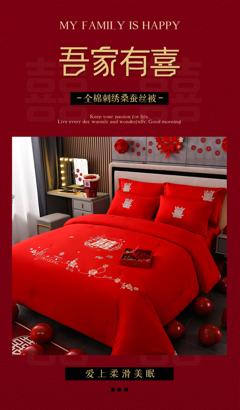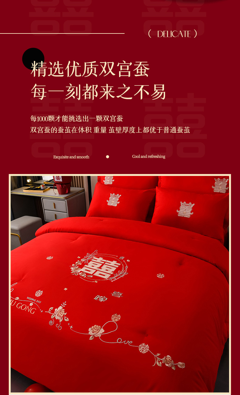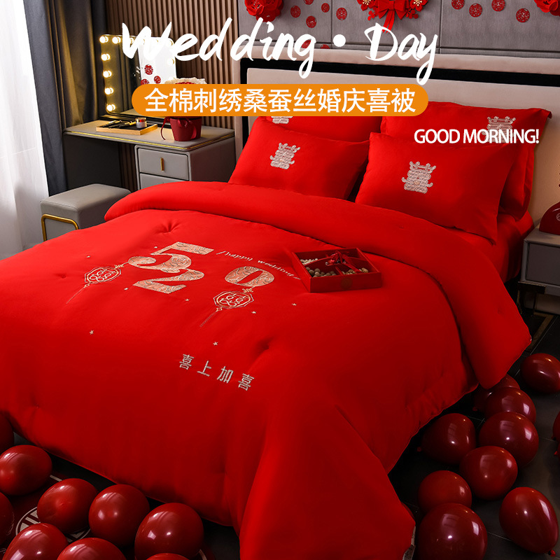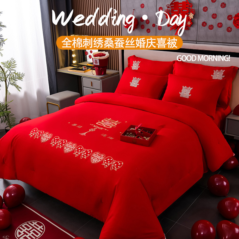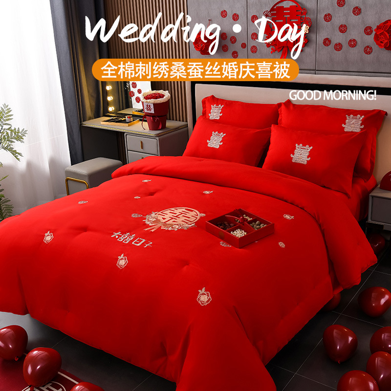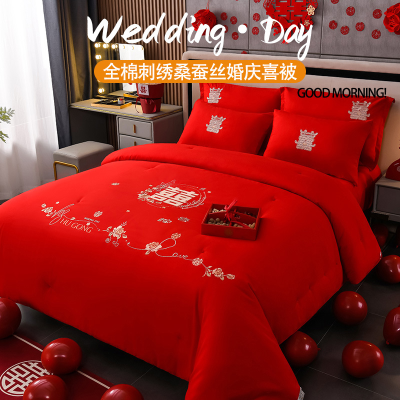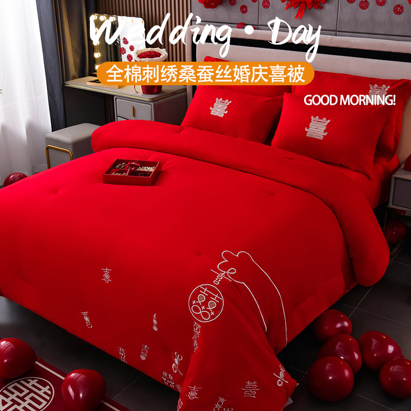 코튼 실크 퀼트 웨딩 퀼트 빅 레드 더블 뽕나무 실크 자수 봄과 가을 퀼트 두꺼운 겨울 이불