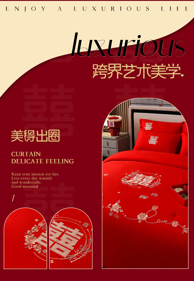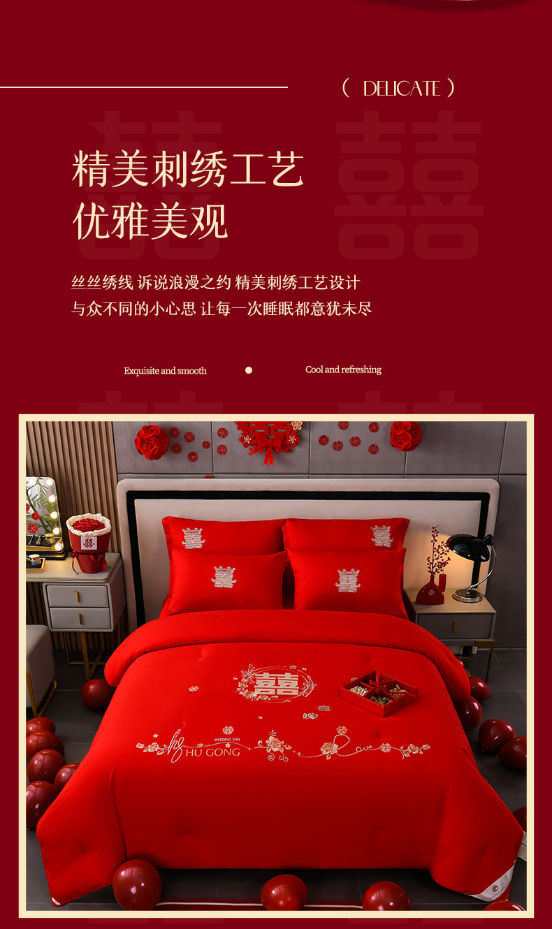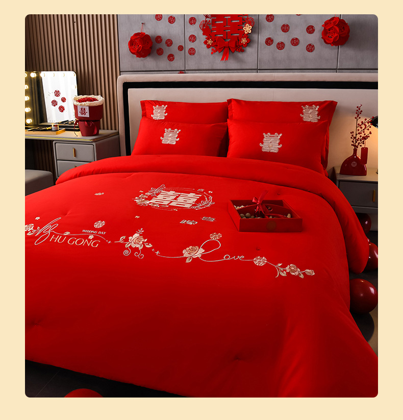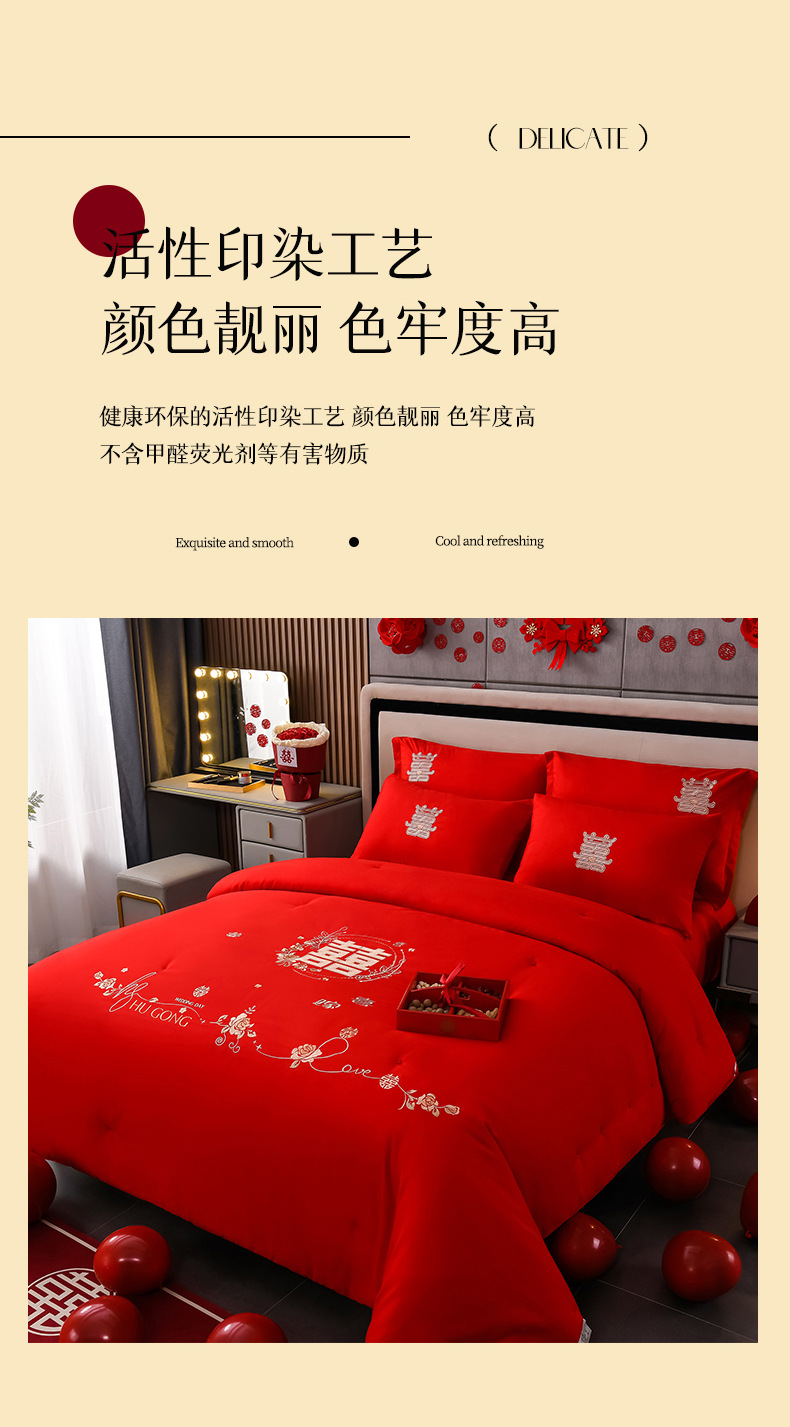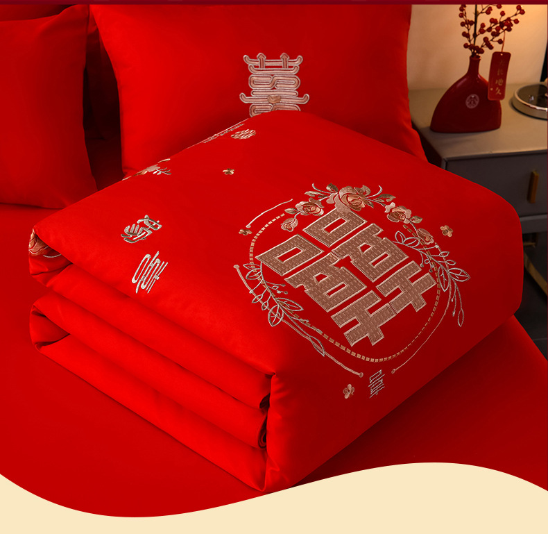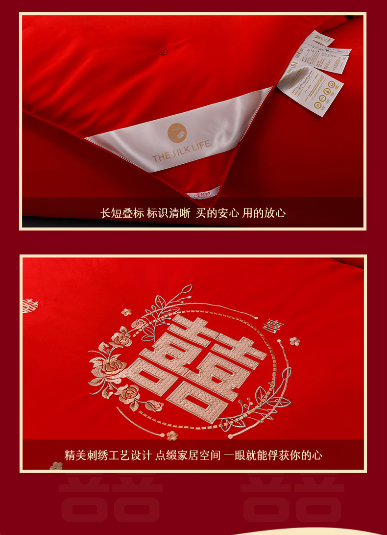 코튼 실크 퀼트 웨딩 퀼트 빅 레드 더블 뽕나무 실크 자수 봄과 가을 퀼트 두꺼운 겨울 이불