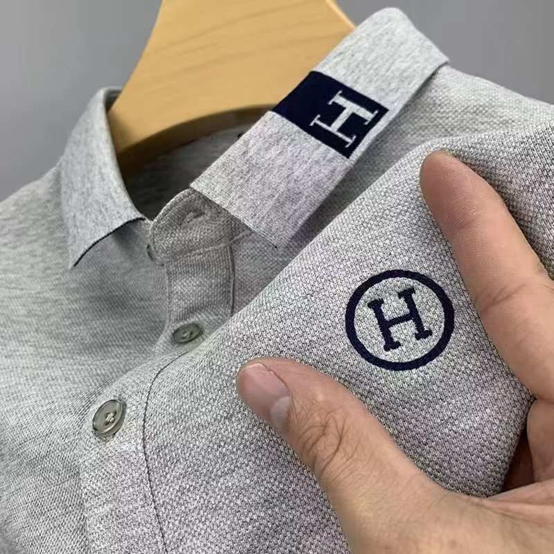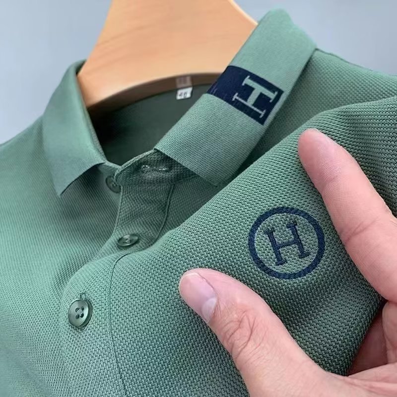 2025 년 여름 남성 반팔 티셔츠 젊고 중년 자수 Llip POLO 셔츠 H 편지 플러스 사이즈 솔리드 컬러 립탑