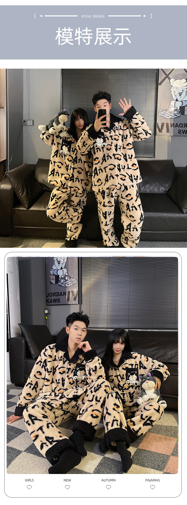 산호 양털 크레용 신 새 커플 파자마 여성 가을과 겨울 기모 플란넬 따뜻한 남자 홈 옷스토어 가기