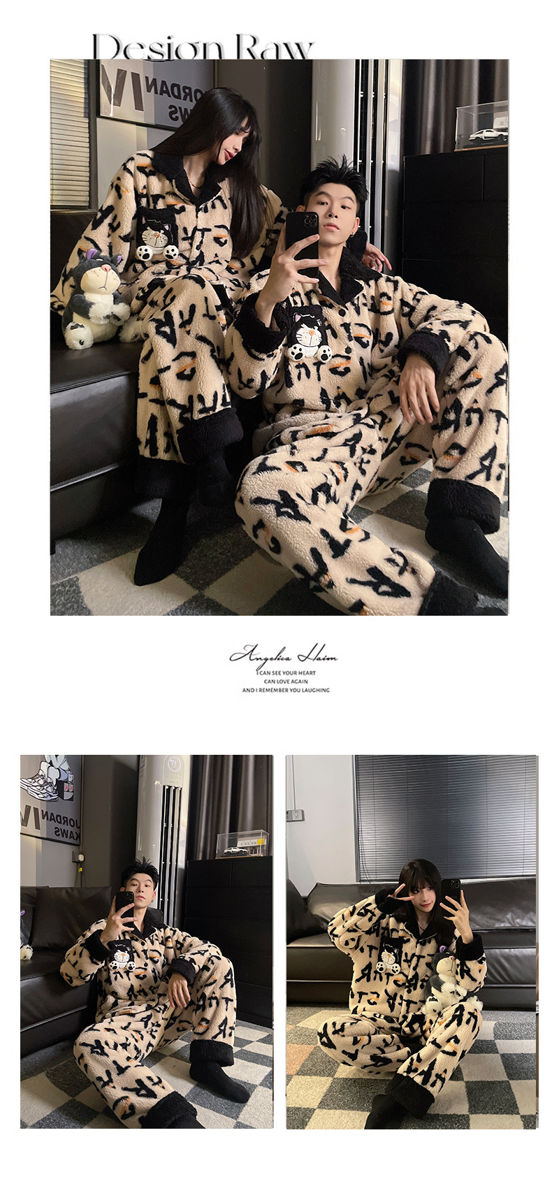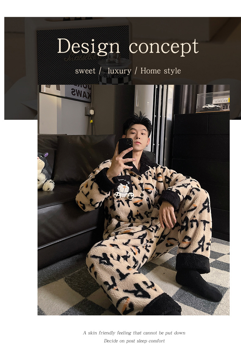 산호 양털 크레용 신 새 커플 파자마 여성 가을과 겨울 기모 플란넬 따뜻한 남자 홈 옷