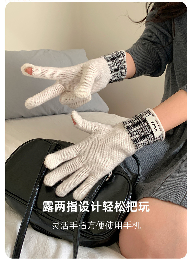 100 순수 양모 장갑 겨울 새로운 여성 솔리드 컬러 샤넬 스타일 터치 스크린 오픈 손가락 따뜻한 방한 승마 학생스토어 가기