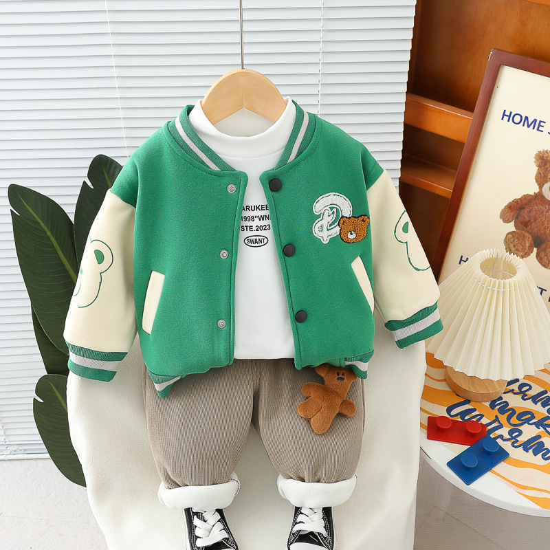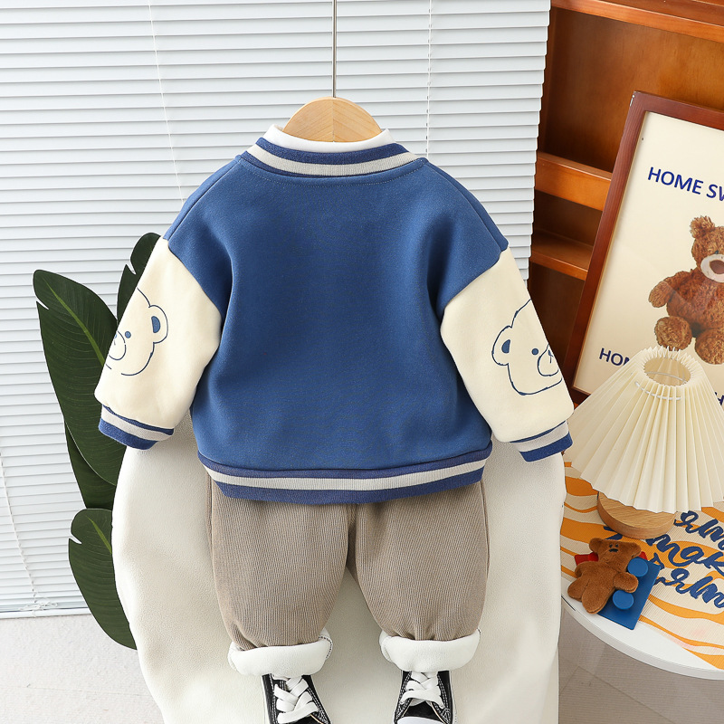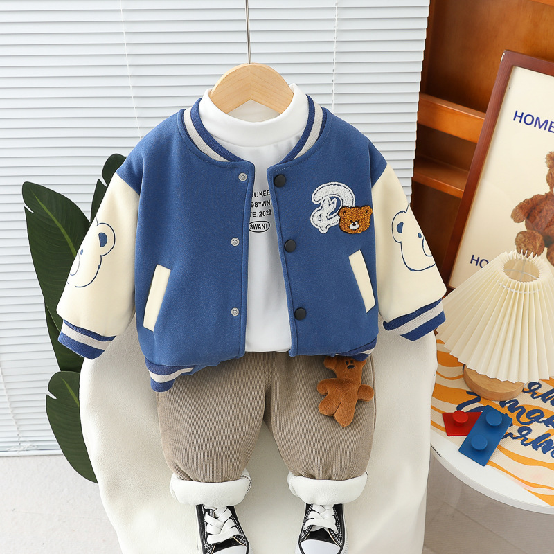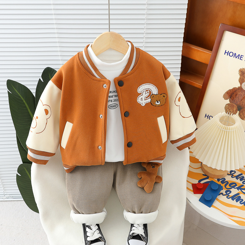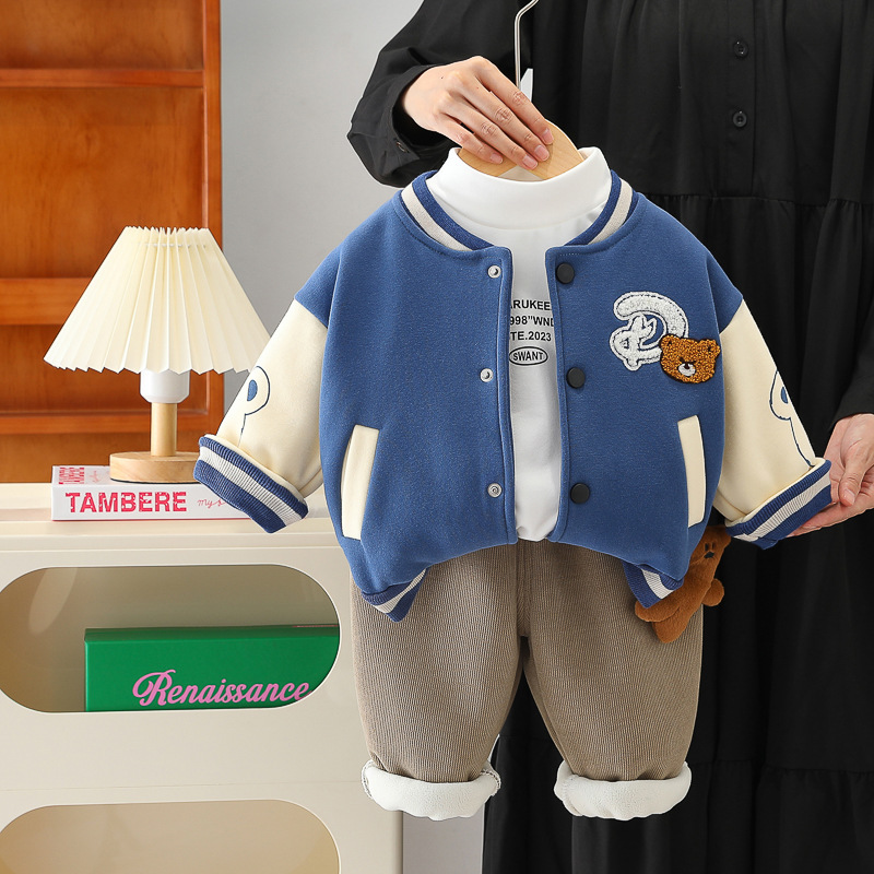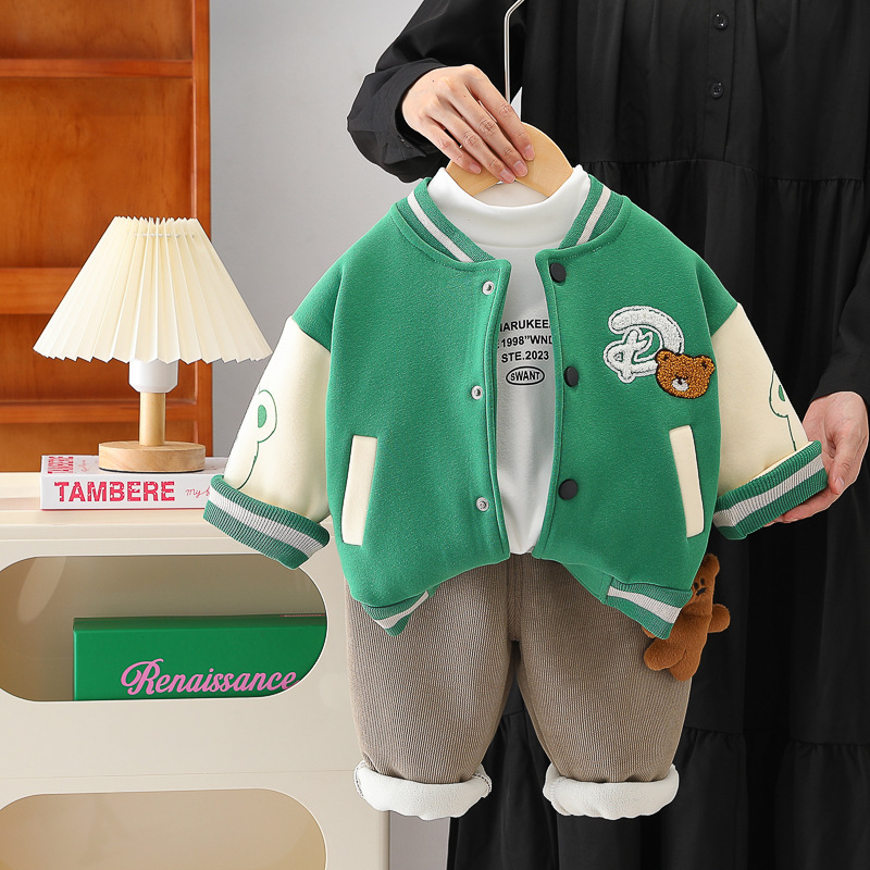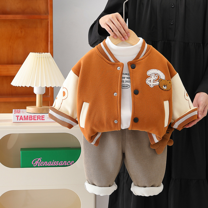 남학생 겨울 의류 외국식 기모 3 종 세트 2024 가을 겨울 어린이 아기 겨울 야구 의류 레저 세트 조수스토어 가기