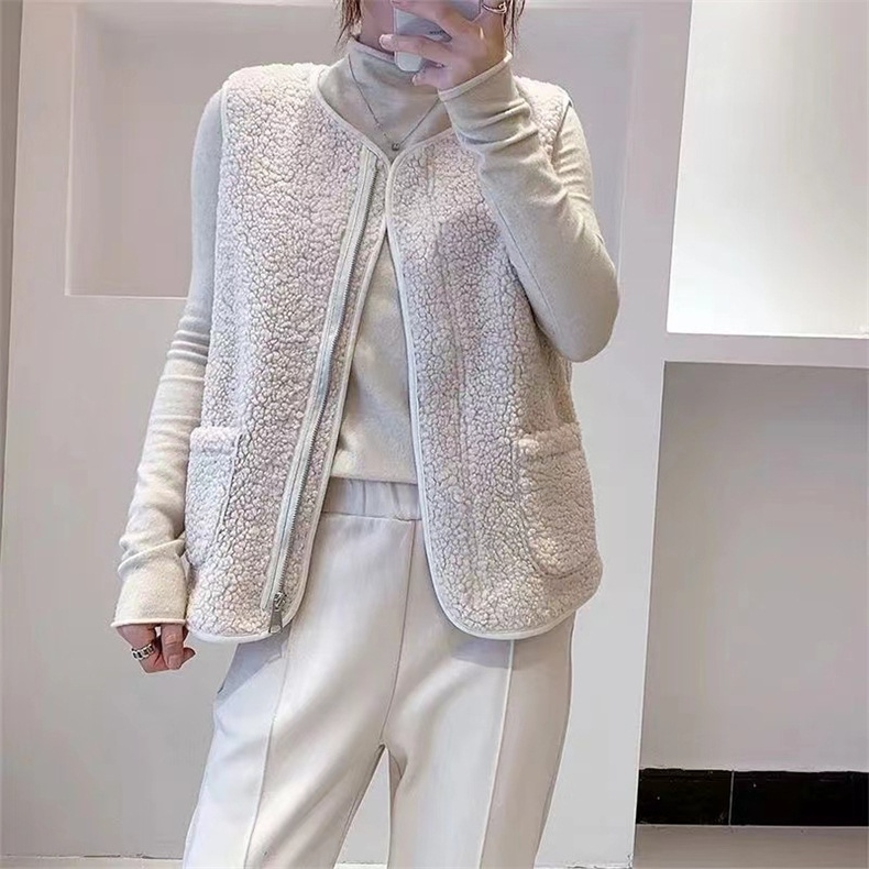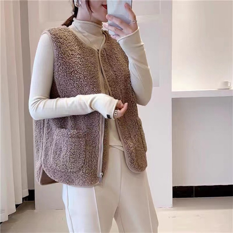 새로운 양고기 봉제 조끼 여성 겨울 겉옷 코트 레트로 스타일 크루 넥 카디건 모피 유행 두꺼운 조끼스토어 가기