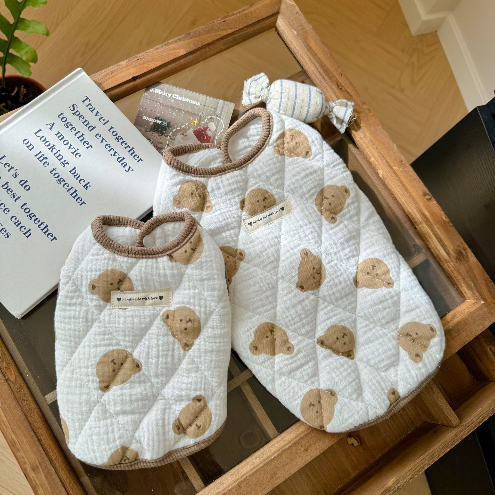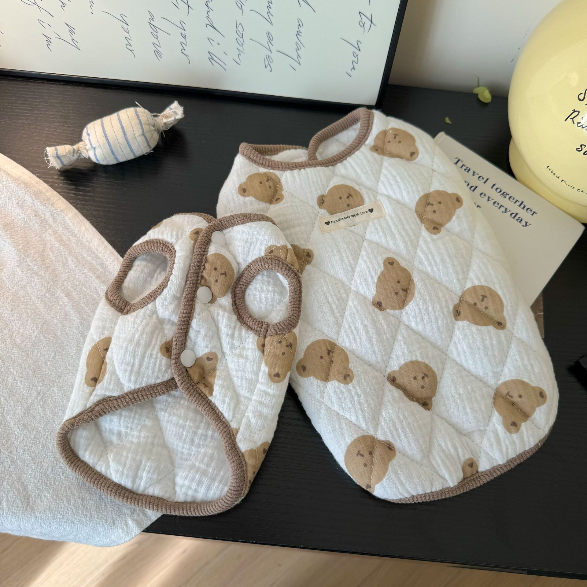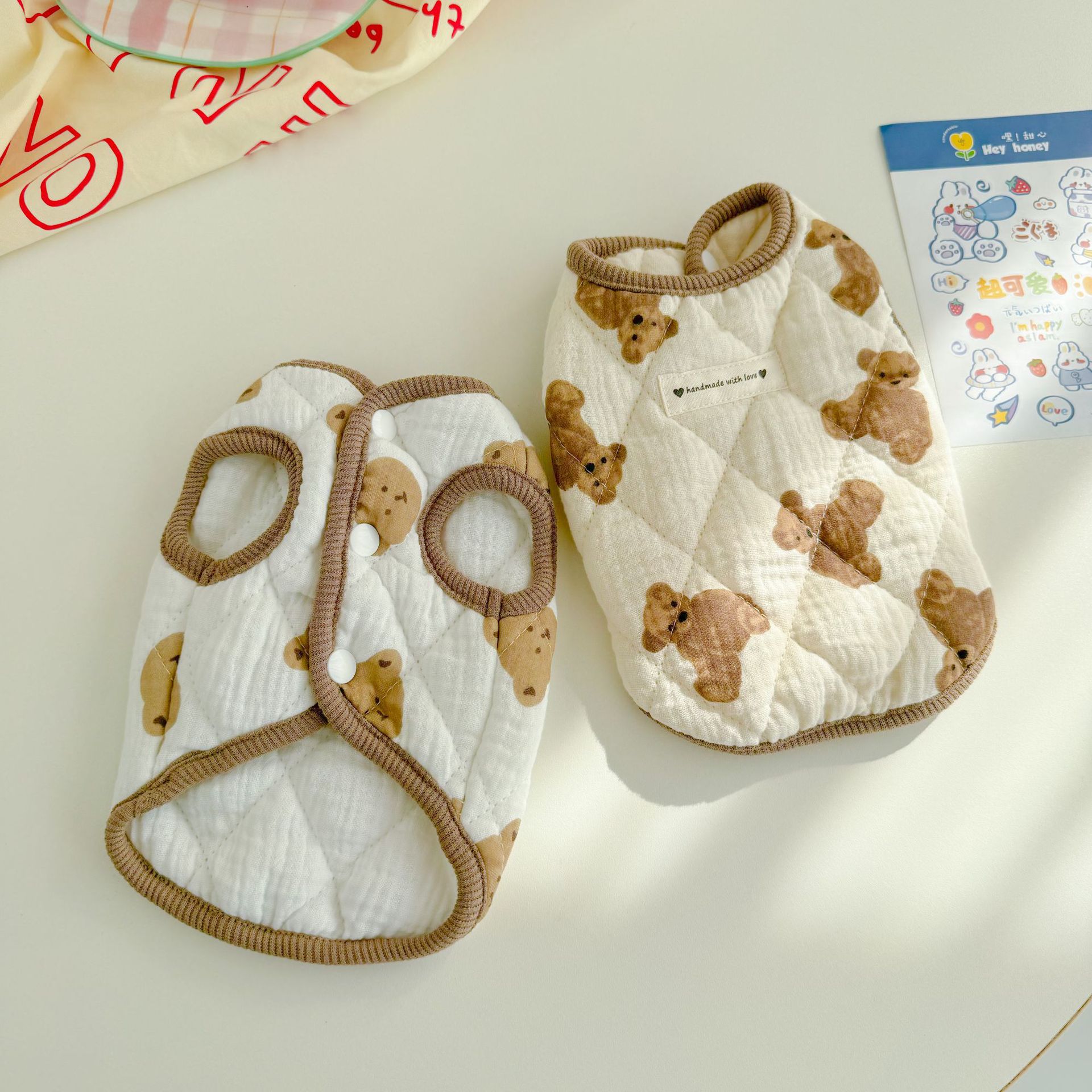 퀼트 코튼 프린트 베어 조끼 가을, 겨울 개 따뜻한 조끼 테디 팬더 고양이 민소매 두꺼운 순수 코튼 플러스 벨벳
