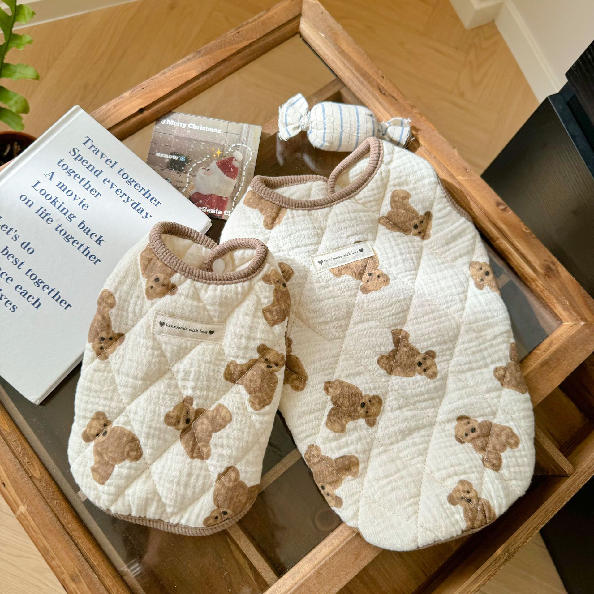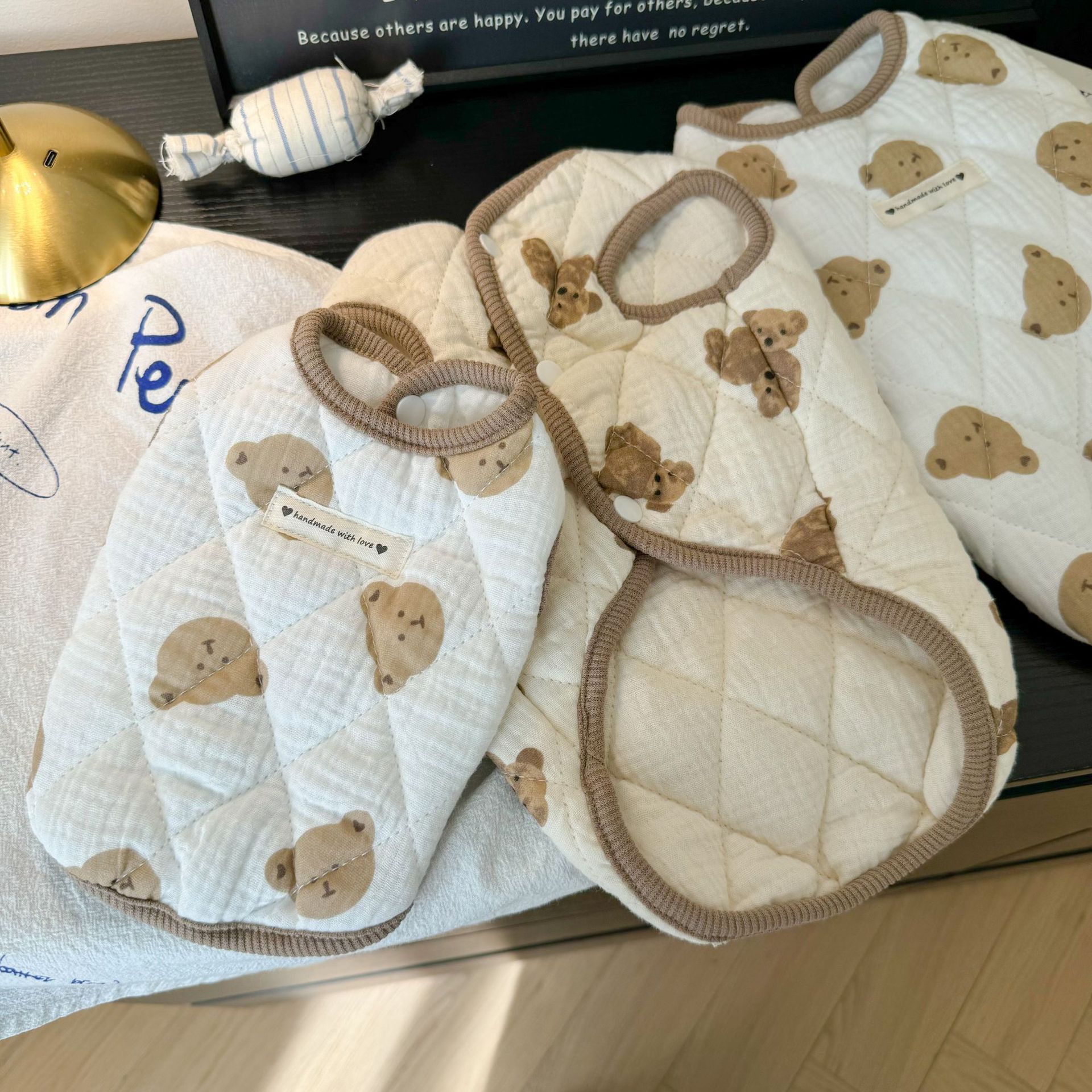 퀼트 코튼 프린트 베어 조끼 가을, 겨울 개 따뜻한 조끼 테디 팬더 고양이 민소매 두꺼운 순수 코튼 플러스 벨벳스토어 가기