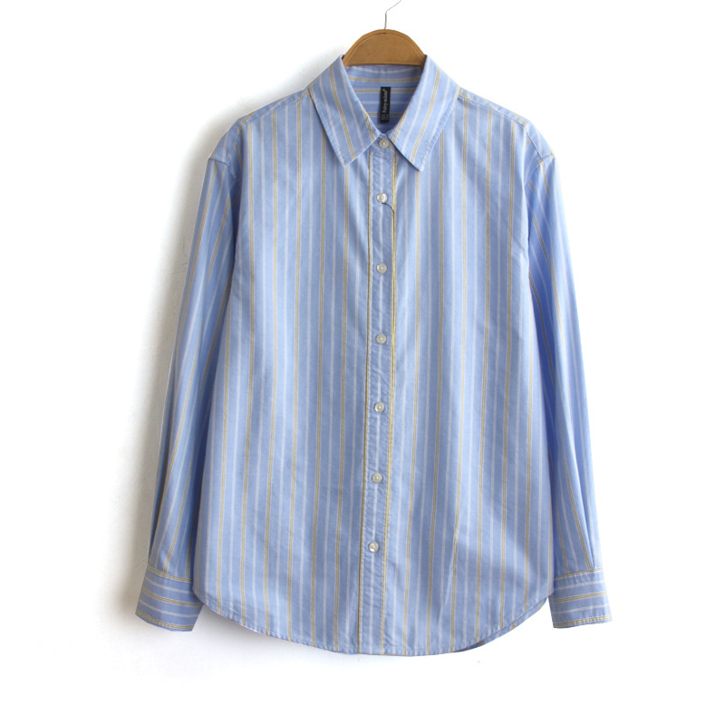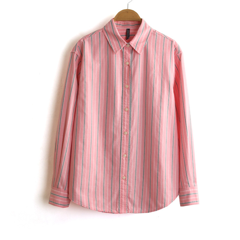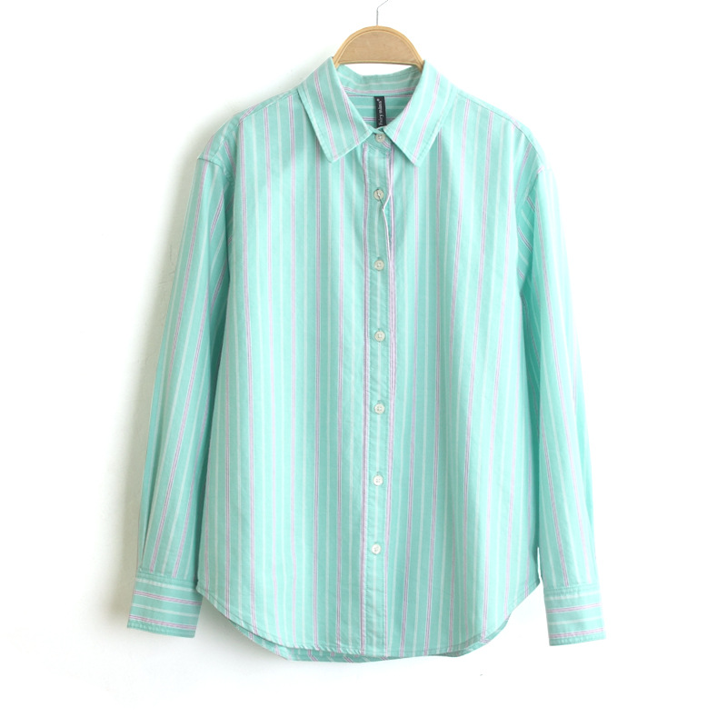 26 봄 신상품 컬러 염색 세로 줄무늬 면 셔츠 루즈핏 긴팔 3색 옥스포드 셔츠 여성용스토어 가기