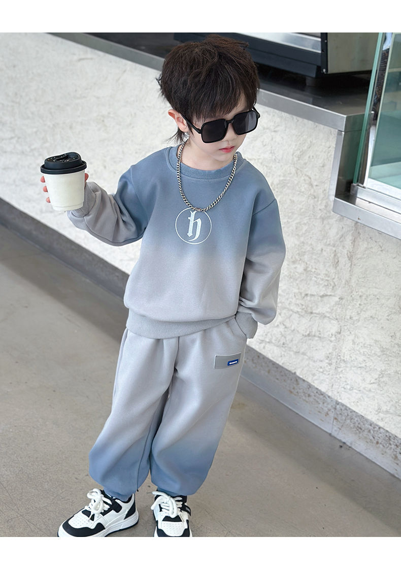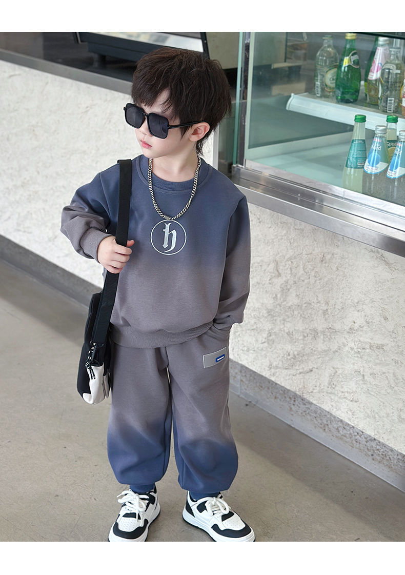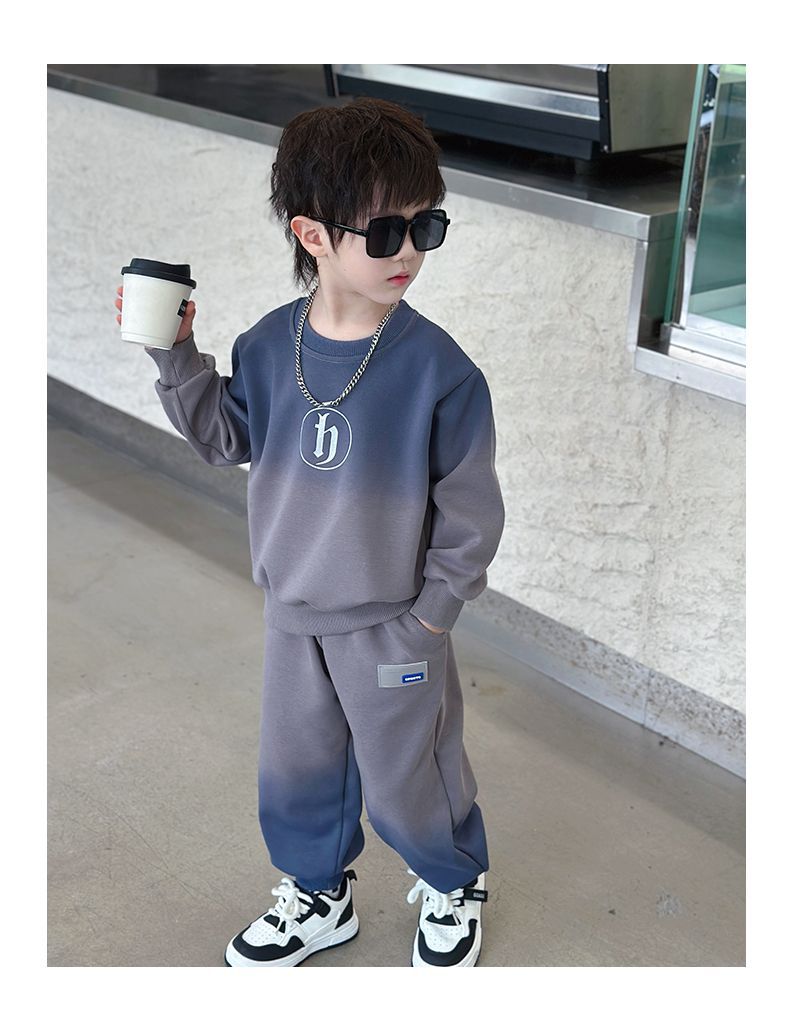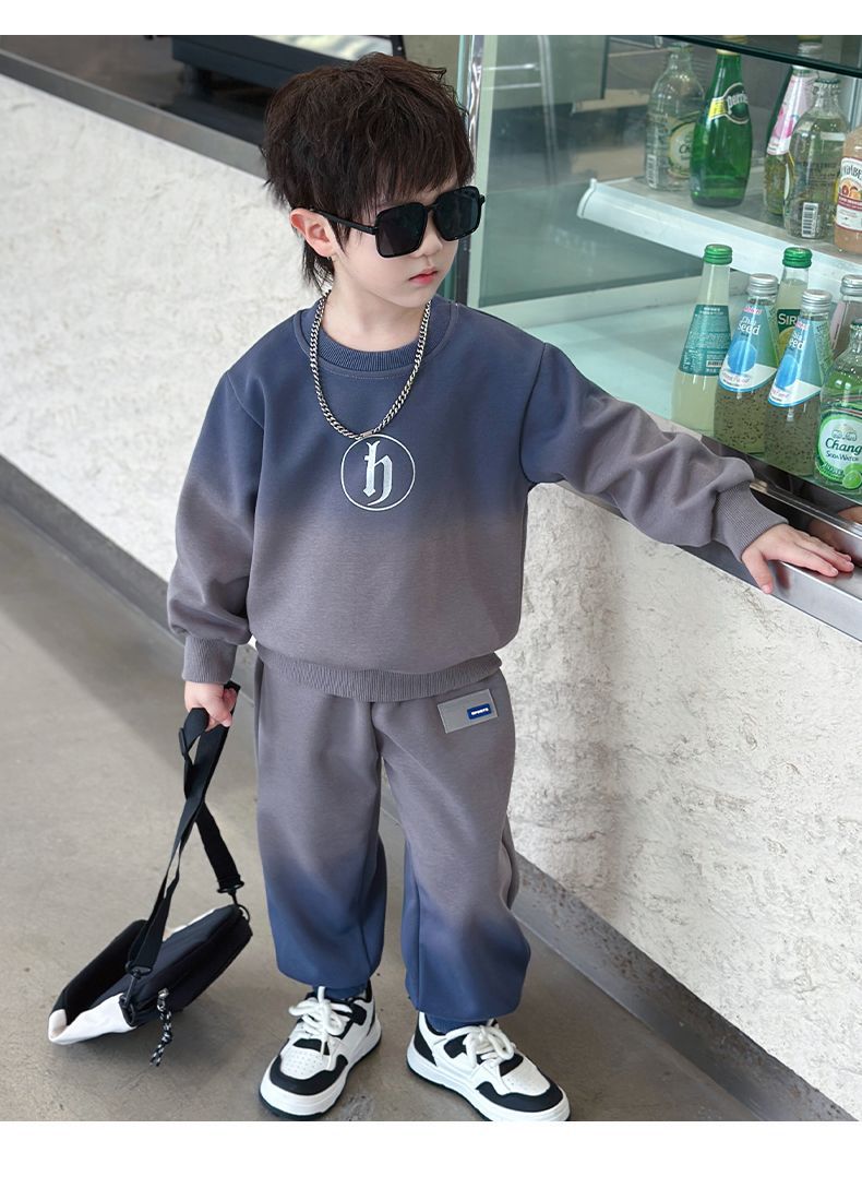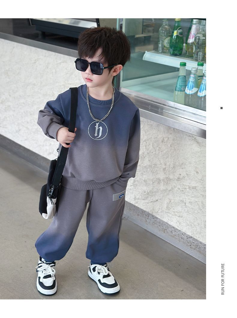 소년의 한국식 세트 어린이 봄과 가을 새로운 서양식 편지 스웨터 유행 캐주얼 바지 스포츠 투피스 세트스토어 가기