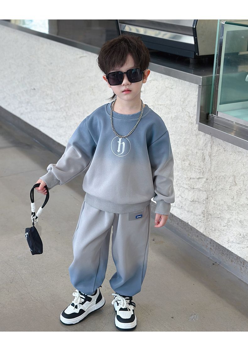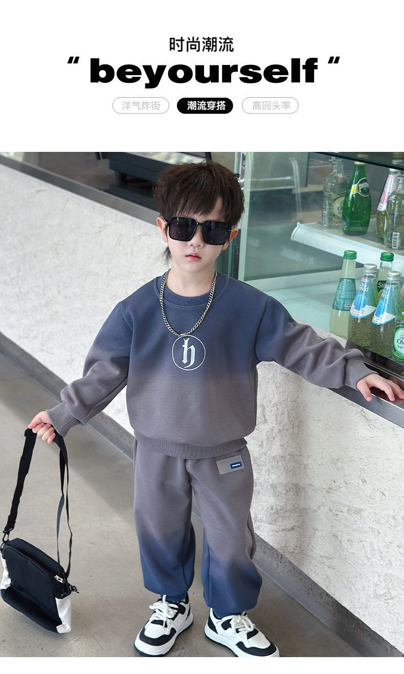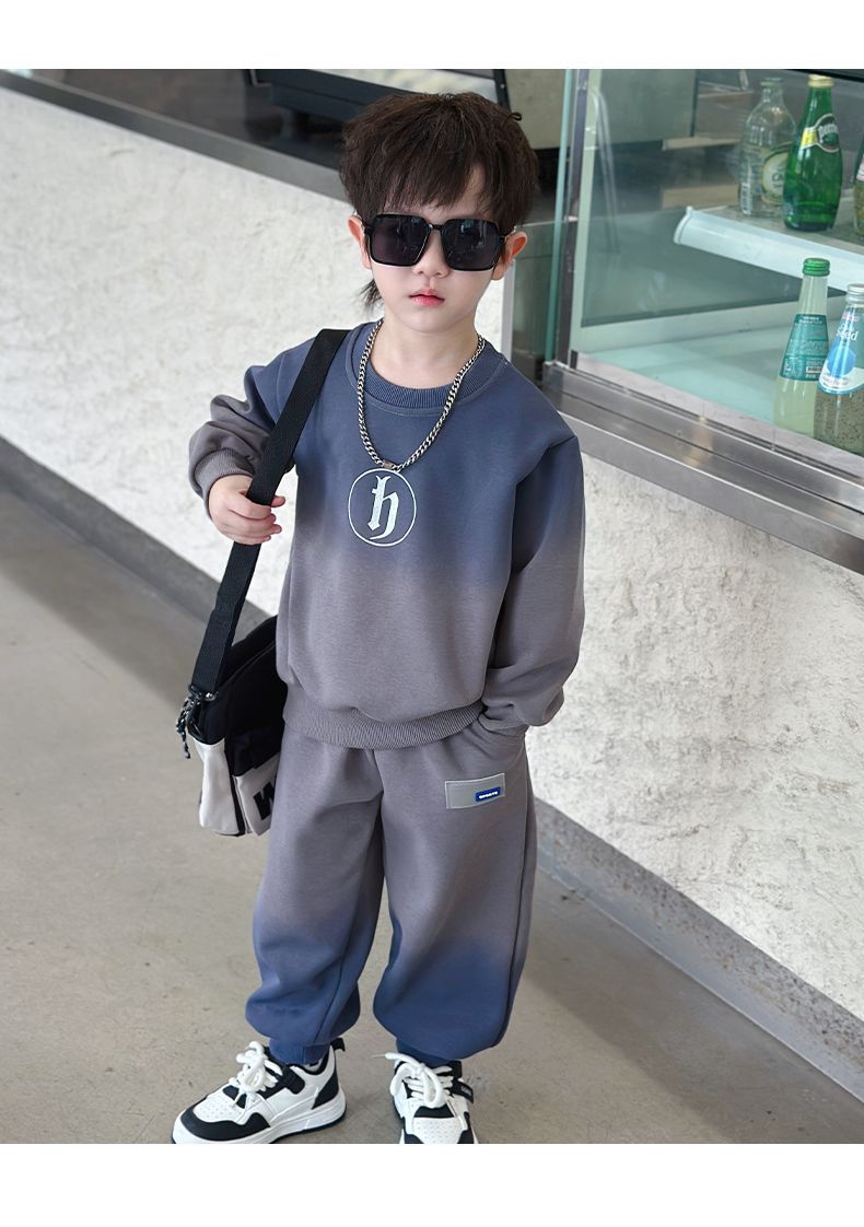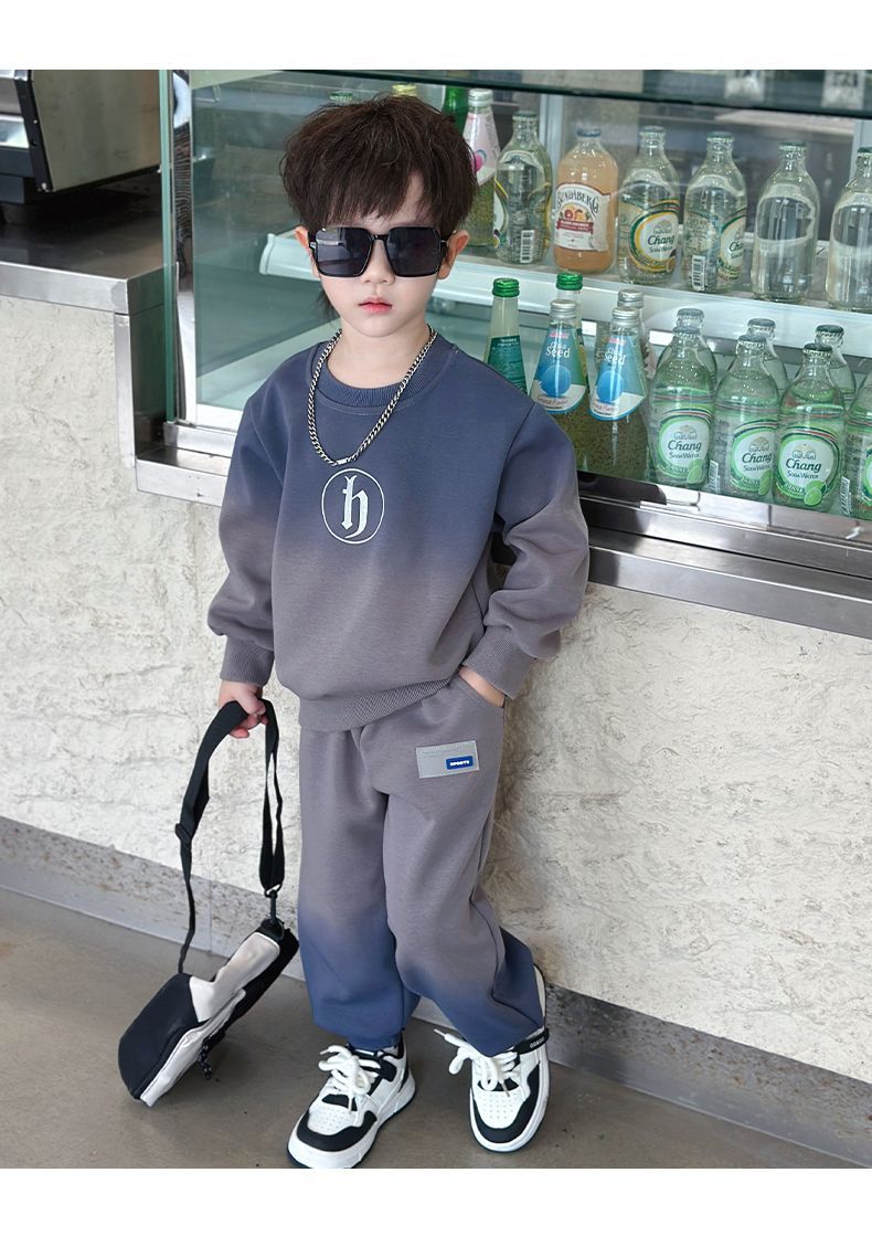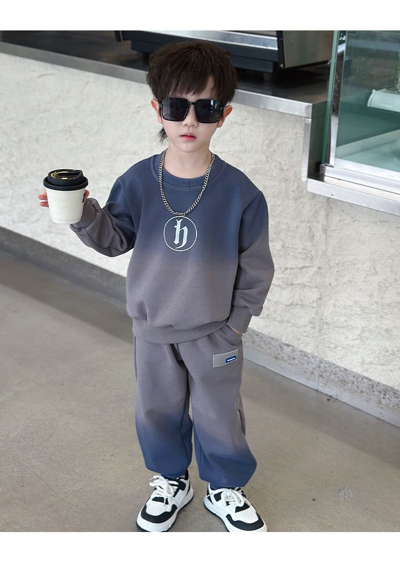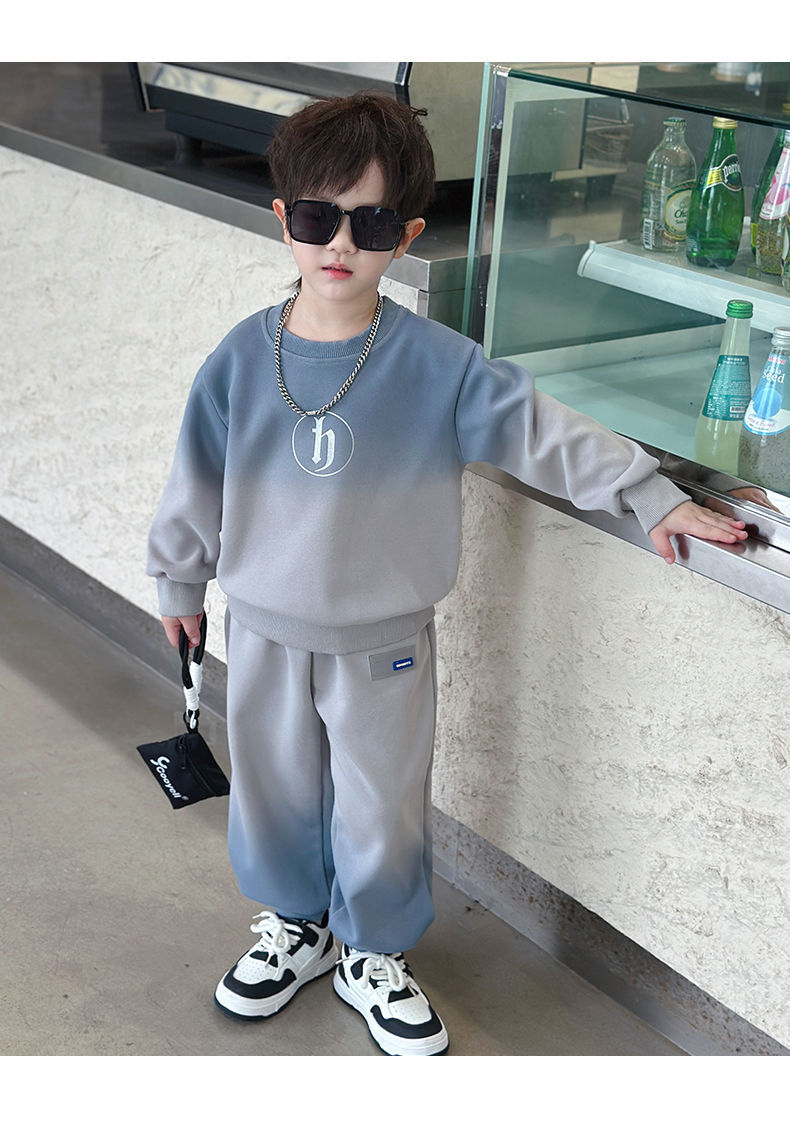 소년의 한국식 세트 어린이 봄과 가을 새로운 서양식 편지 스웨터 유행 캐주얼 바지 스포츠 투피스 세트스토어 가기