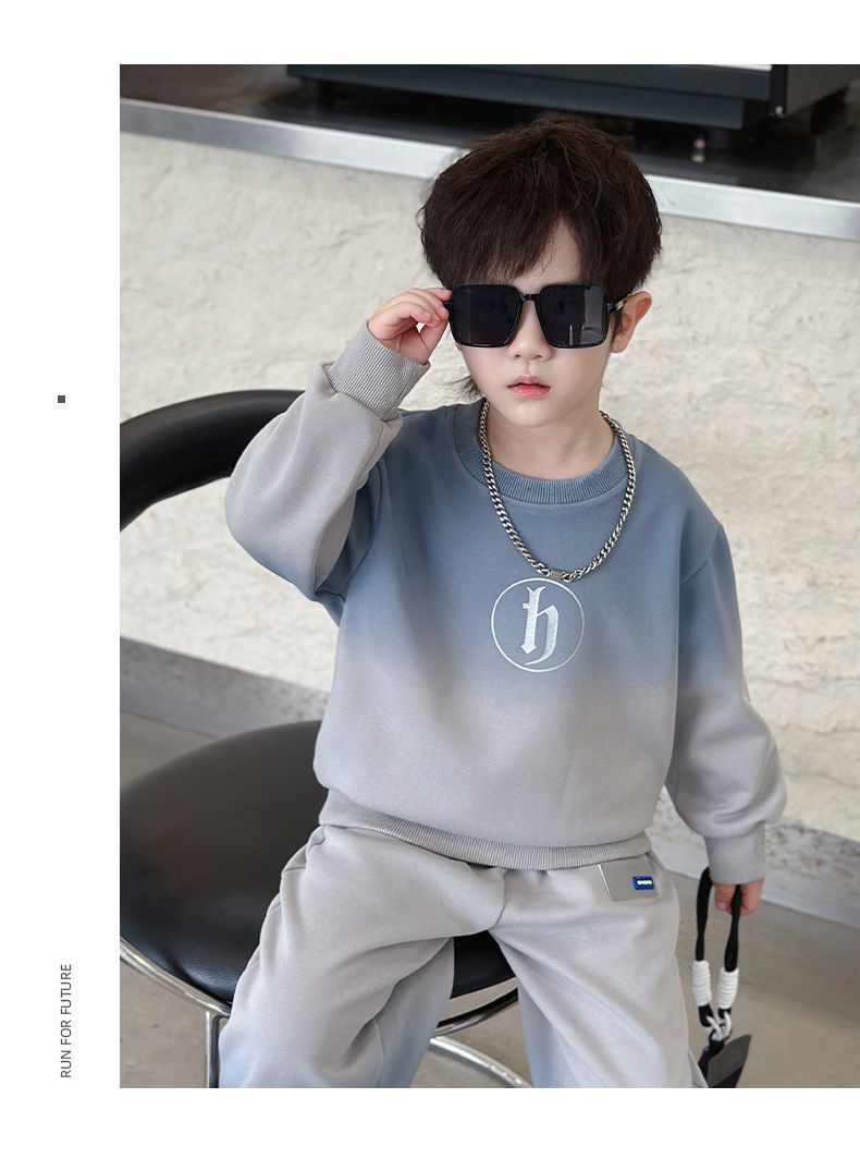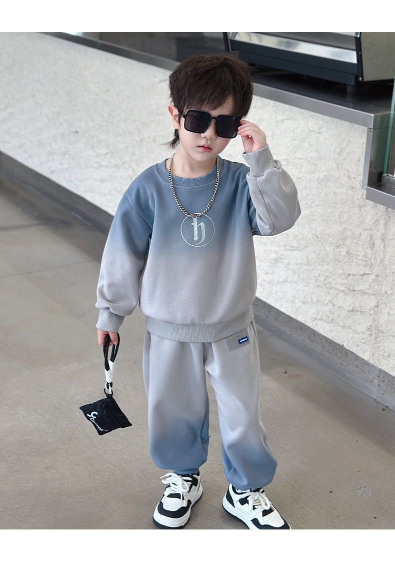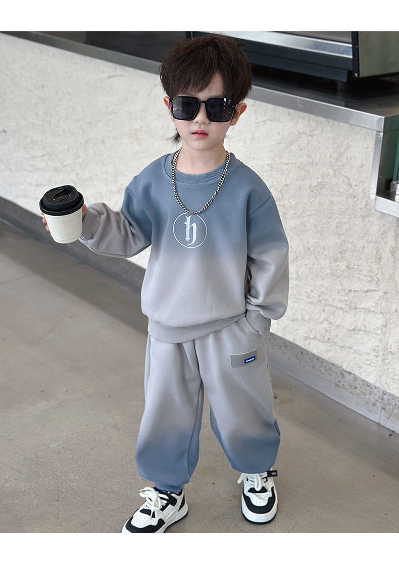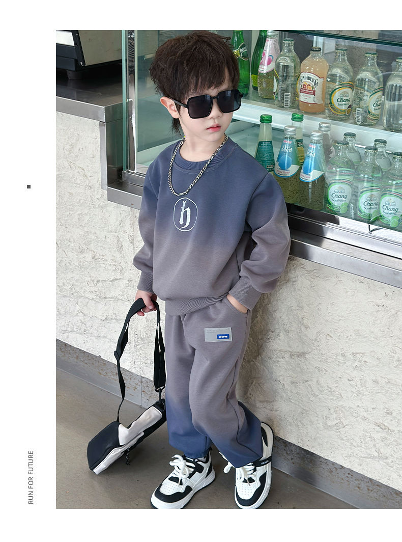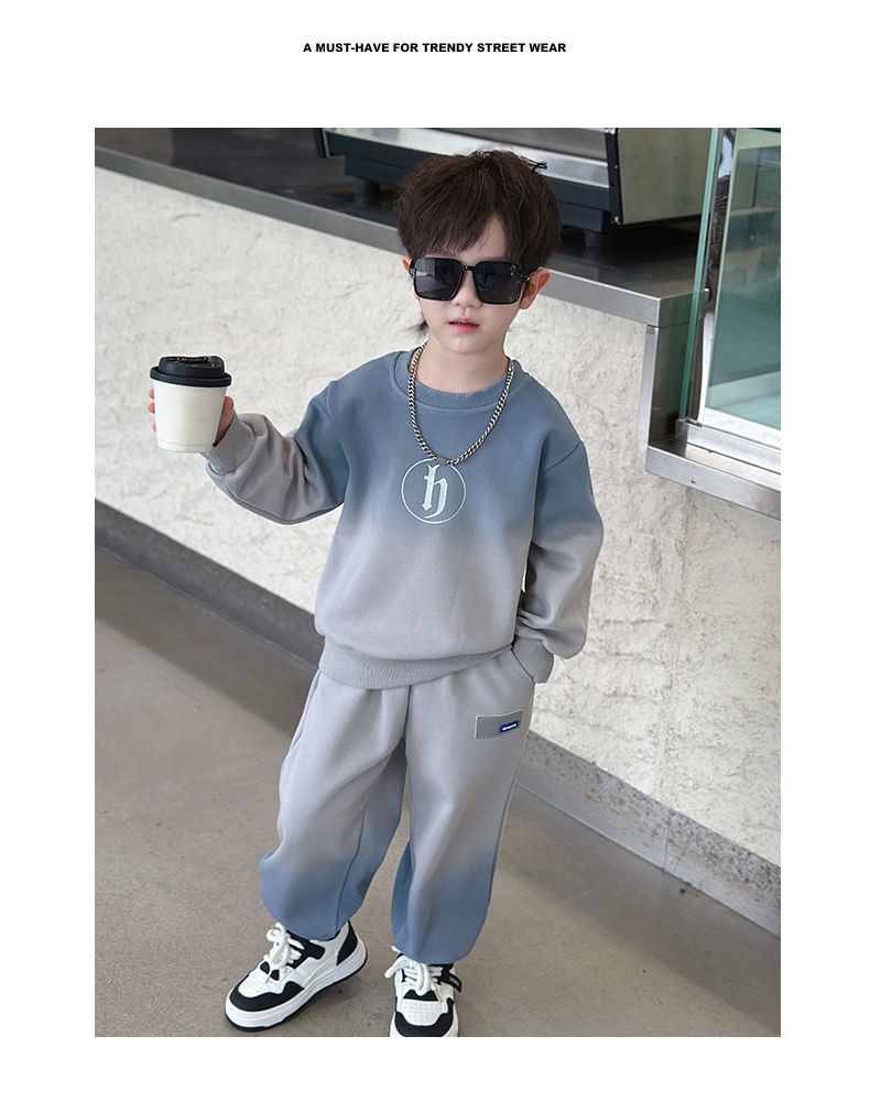 소년의 한국식 세트 어린이 봄과 가을 새로운 서양식 편지 스웨터 유행 캐주얼 바지 스포츠 투피스 세트스토어 가기