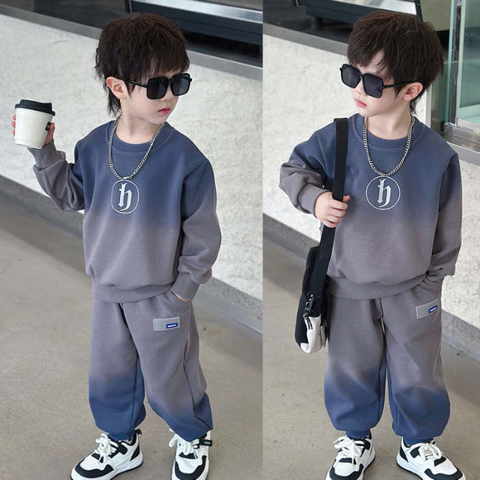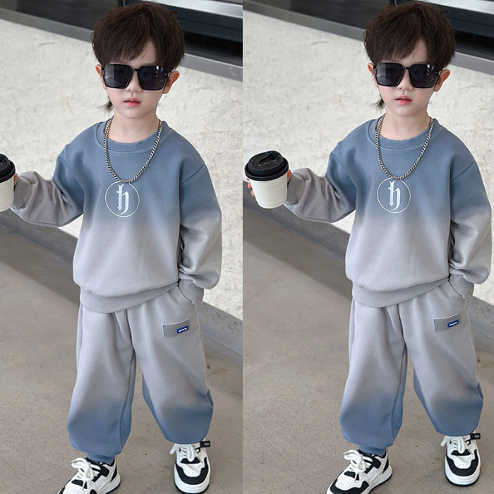 소년의 한국식 세트 어린이 봄과 가을 새로운 서양식 편지 스웨터 유행 캐주얼 바지 스포츠 투피스 세트