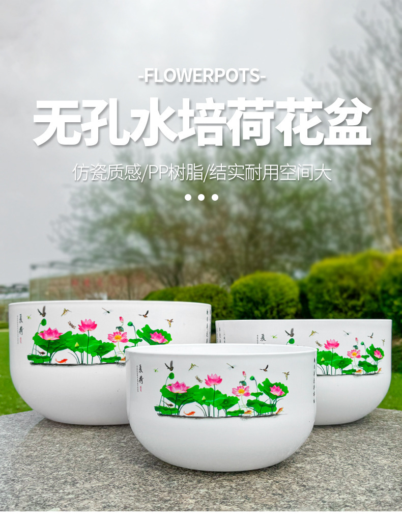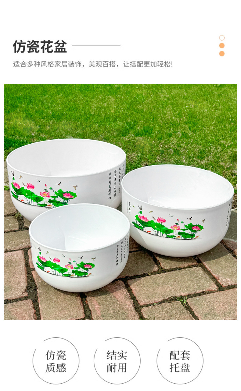 비 다공성 두꺼운 초대형 발코니 도자기 모양의 사발 백합 수경 녹색 심기 플라스틱 꽃 냄비 수지 꽃 냄비