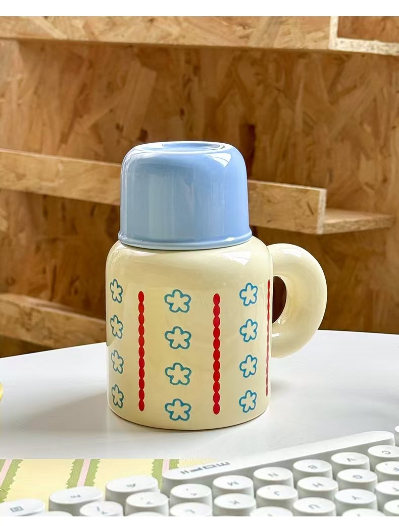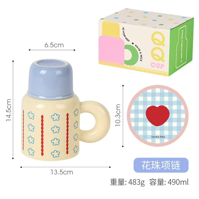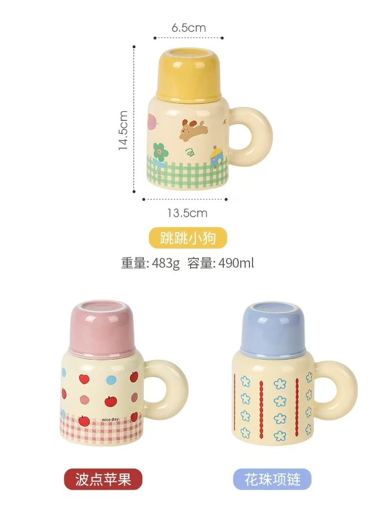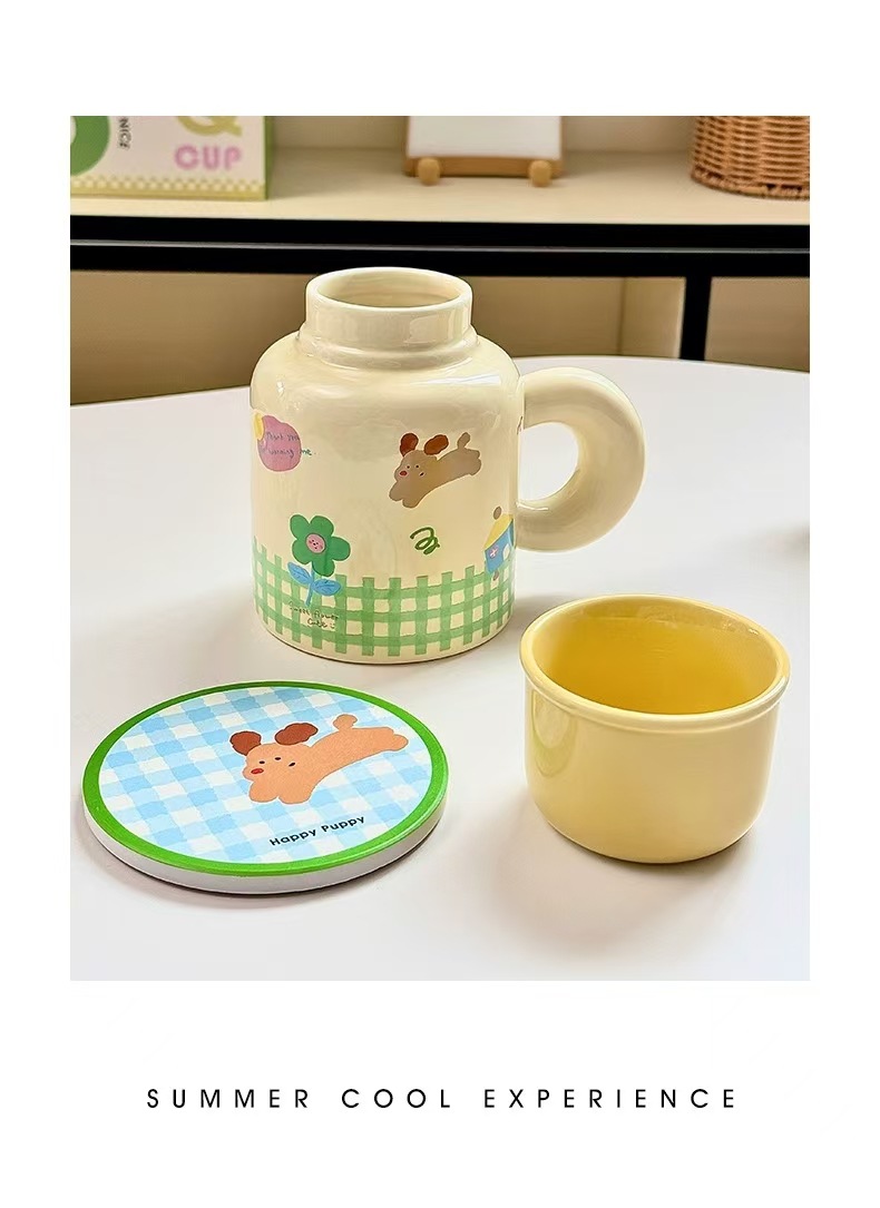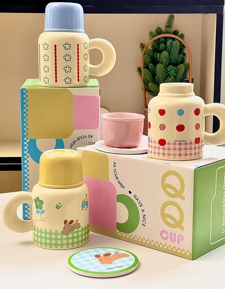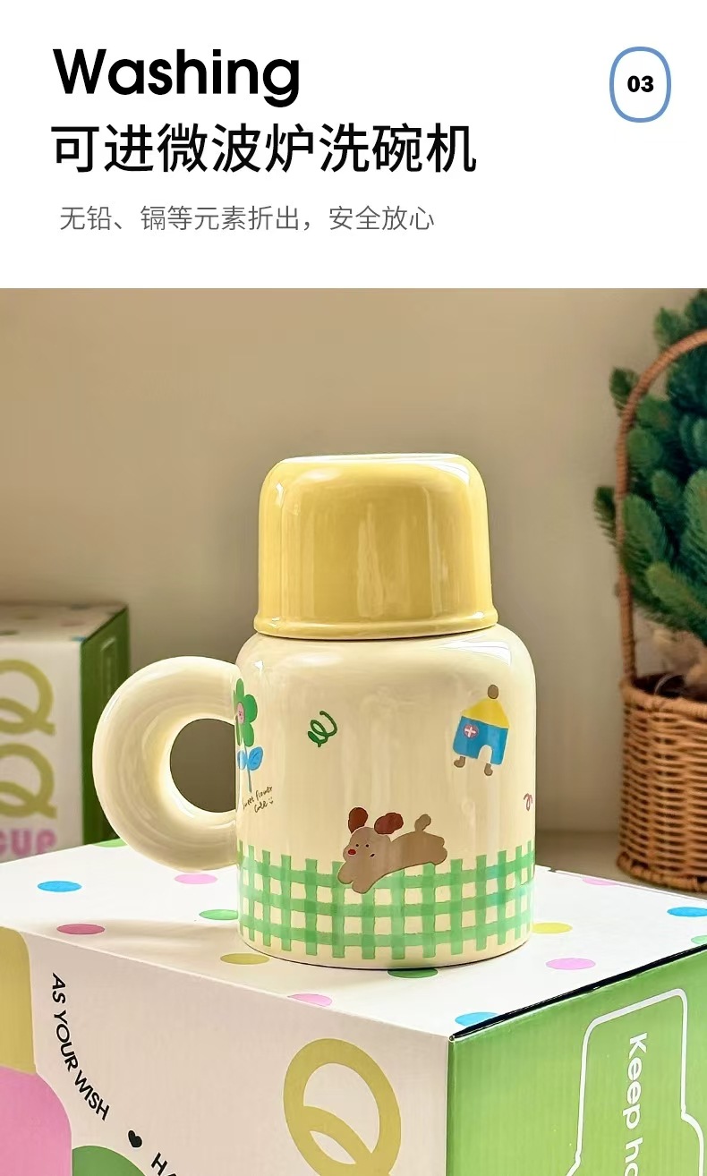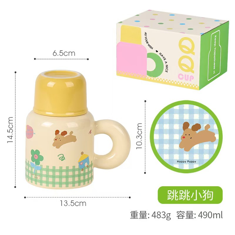 세라믹 강아지 QQ컵 대용량 뚜껑있는 머그컵 여성용 예쁜 선물 로고 커플컵 선물세트