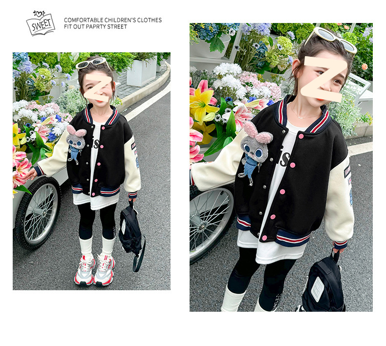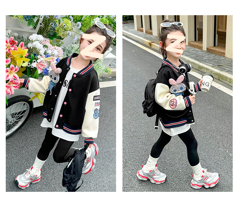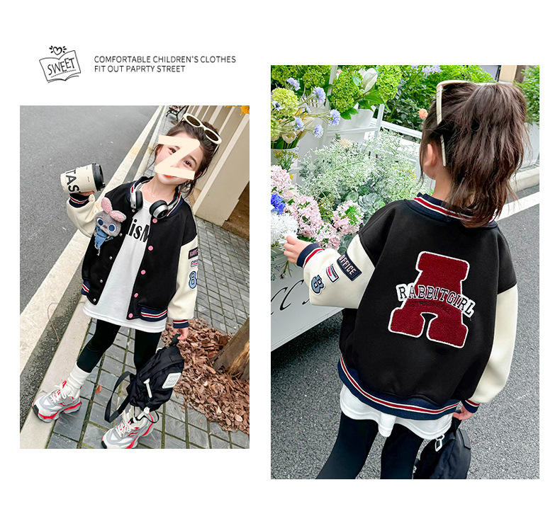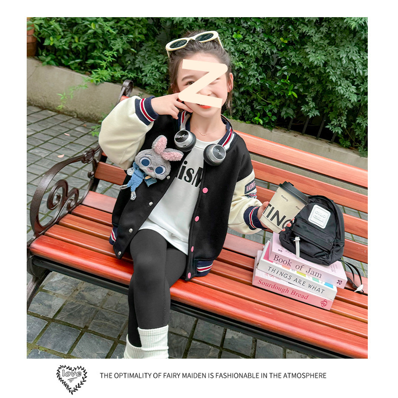 여자 가을 야구 세트 코트 2024 새로운 어린이 서양식 귀여운 색상 매칭 한국식 코트 카디건 탑스토어 가기