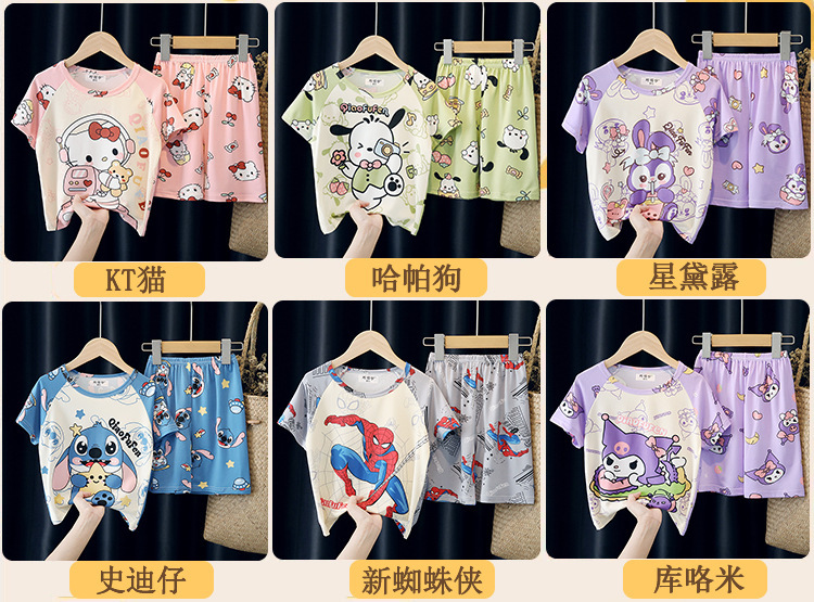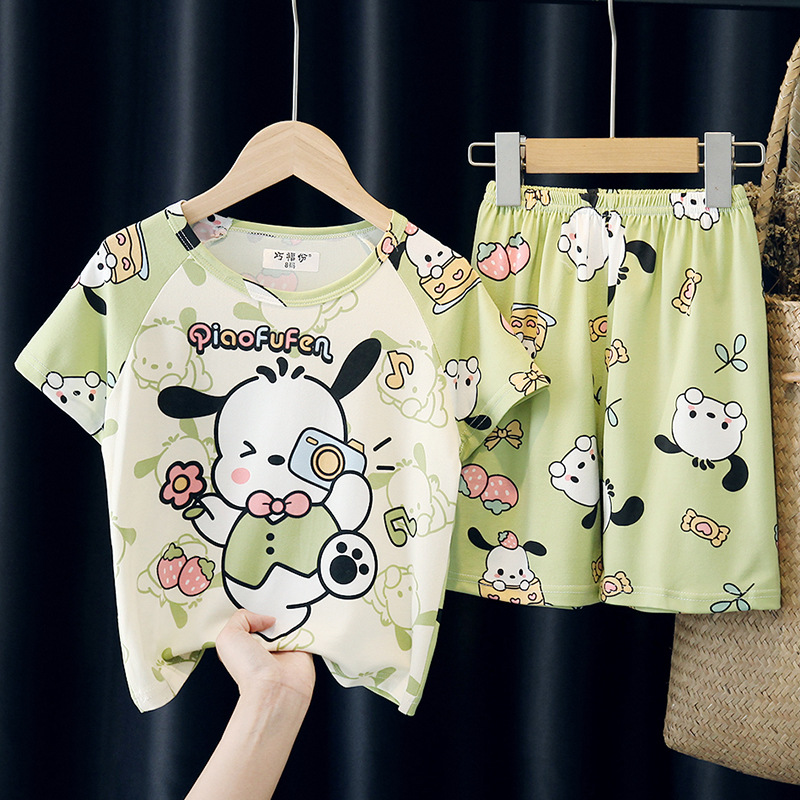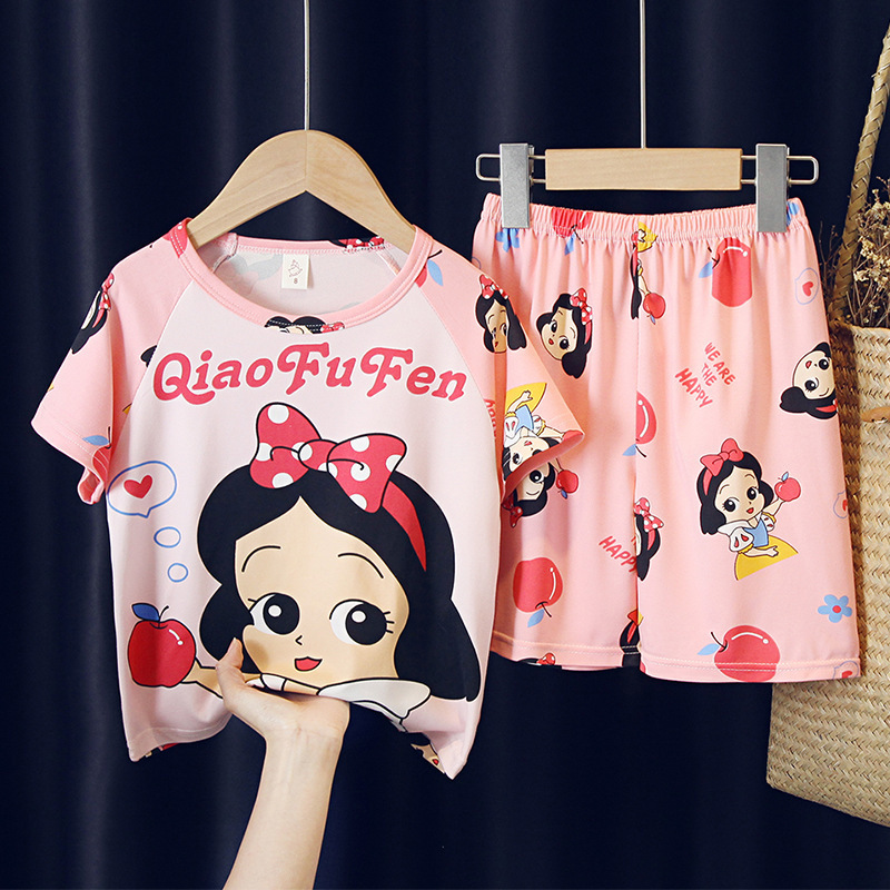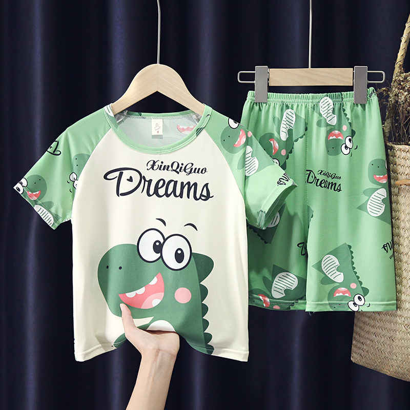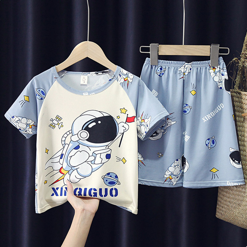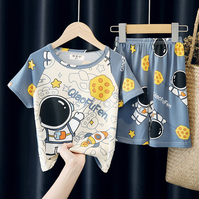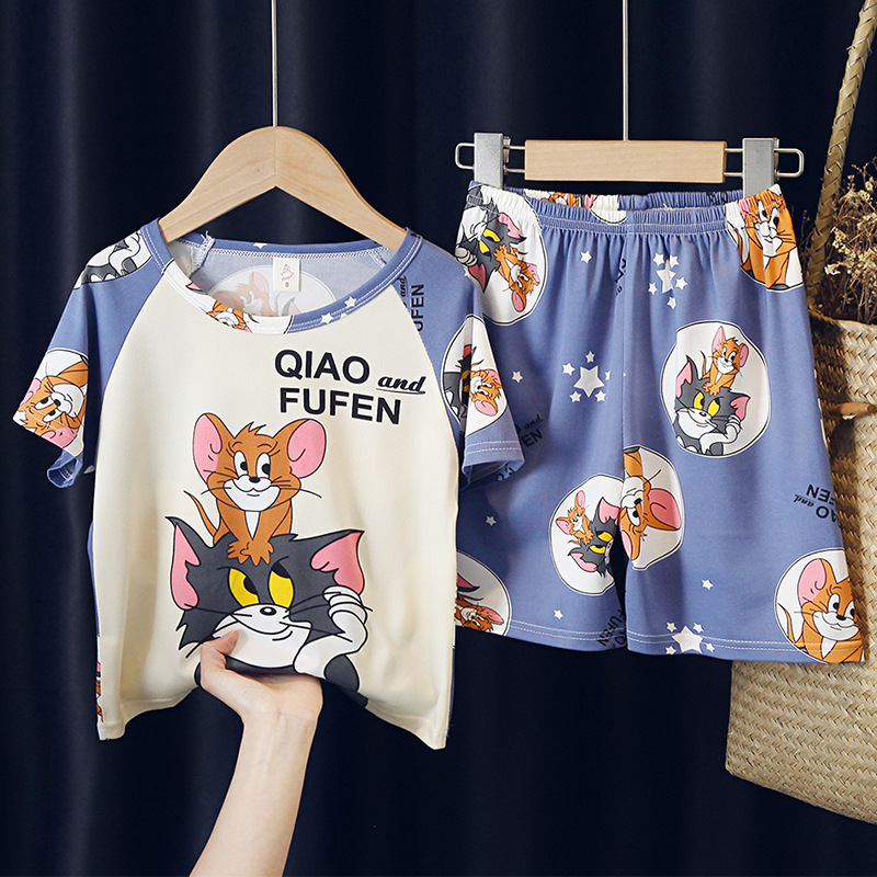 어린이와 소녀를위한 잠옷 여름 남자를위한 반소매 에어컨 옷 얇은 만화 중간 크기의 큰 어린이와 아기 홈 옷 세트