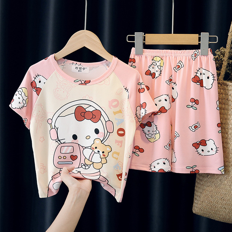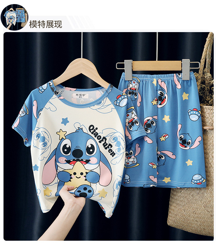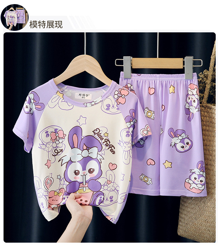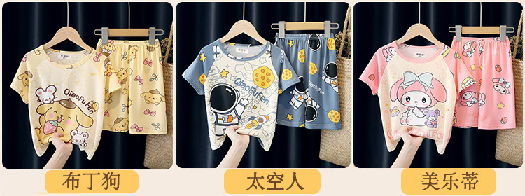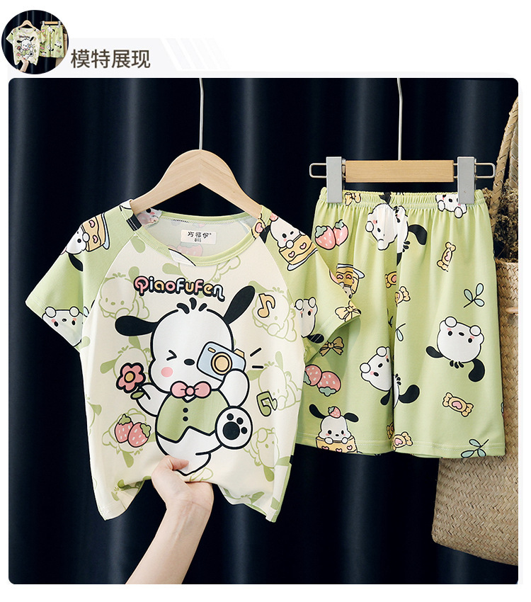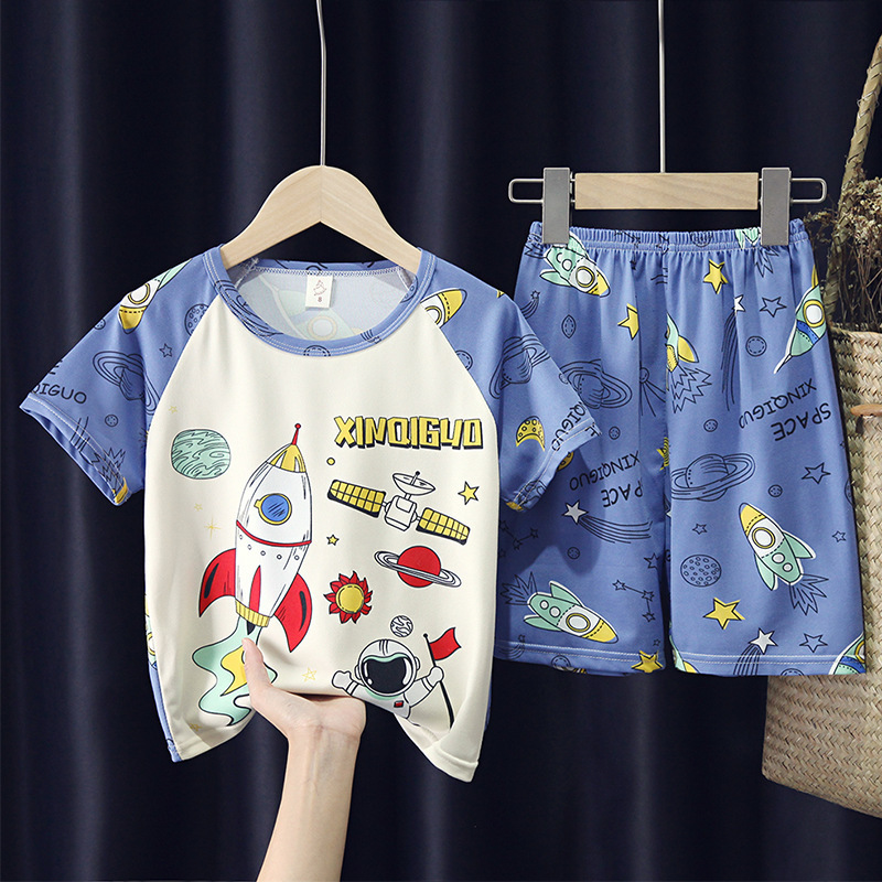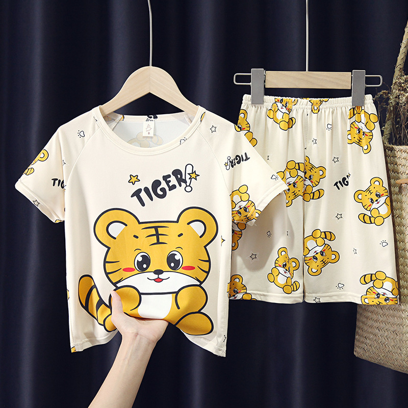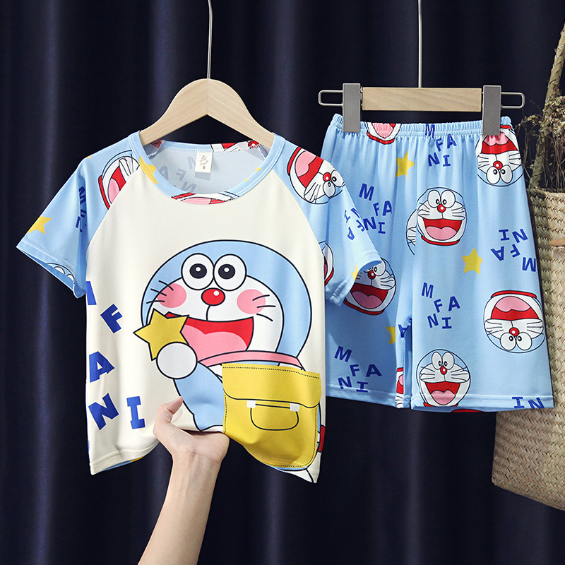 어린이와 소녀를위한 잠옷 여름 남자를위한 반소매 에어컨 옷 얇은 만화 중간 크기의 큰 어린이와 아기 홈 옷 세트