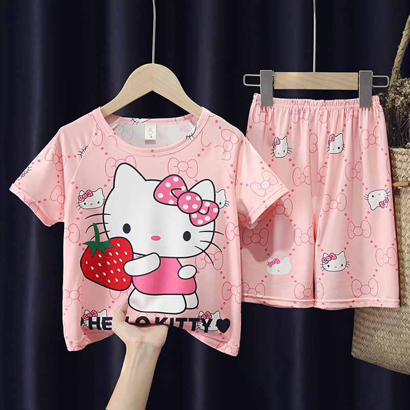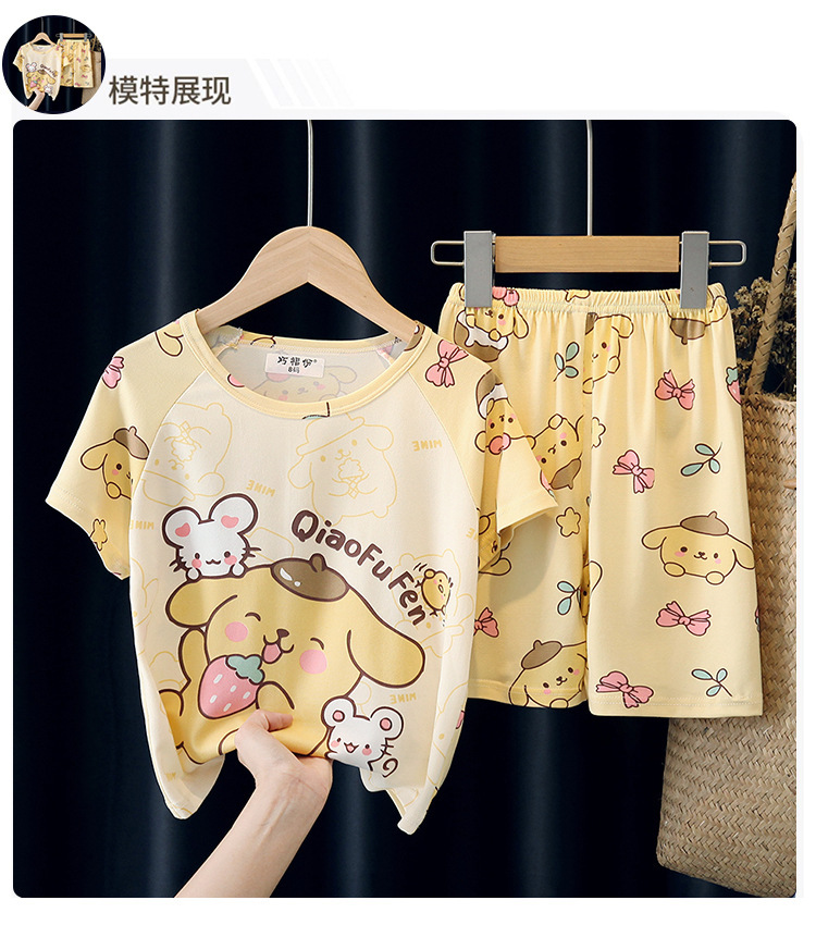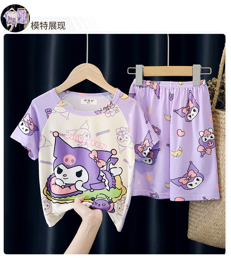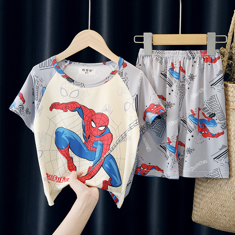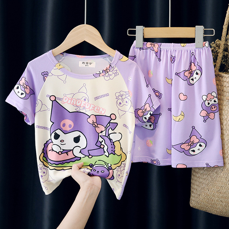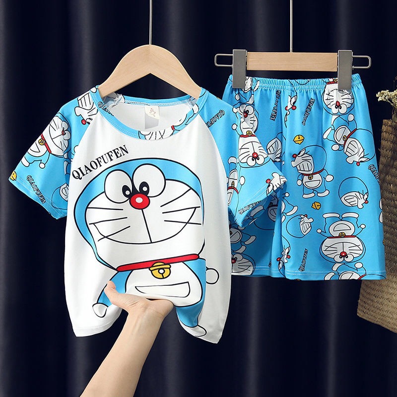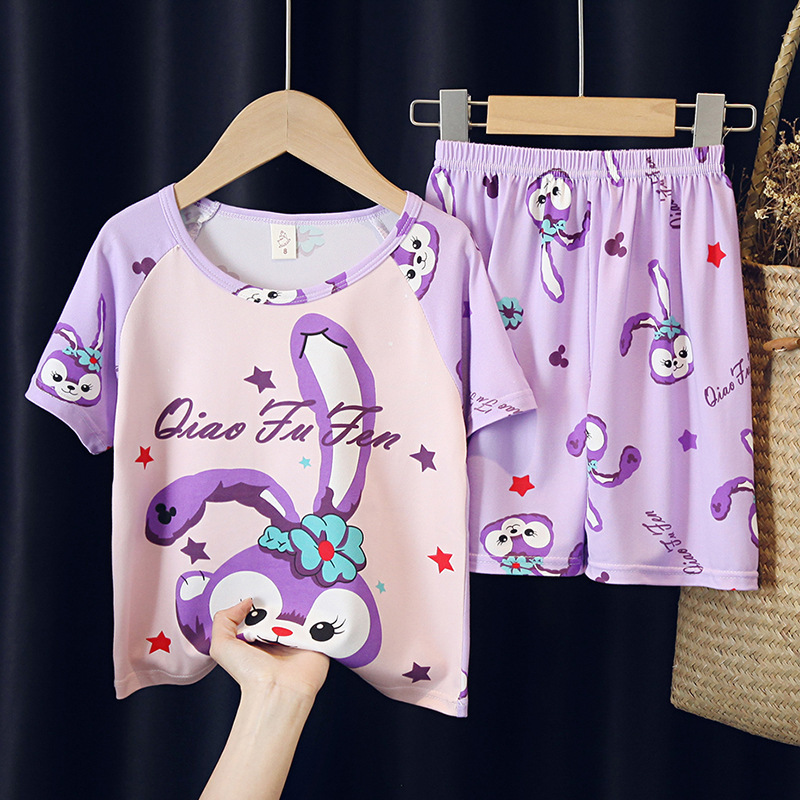 어린이와 소녀를위한 잠옷 여름 남자를위한 반소매 에어컨 옷 얇은 만화 중간 크기의 큰 어린이와 아기 홈 옷 세트