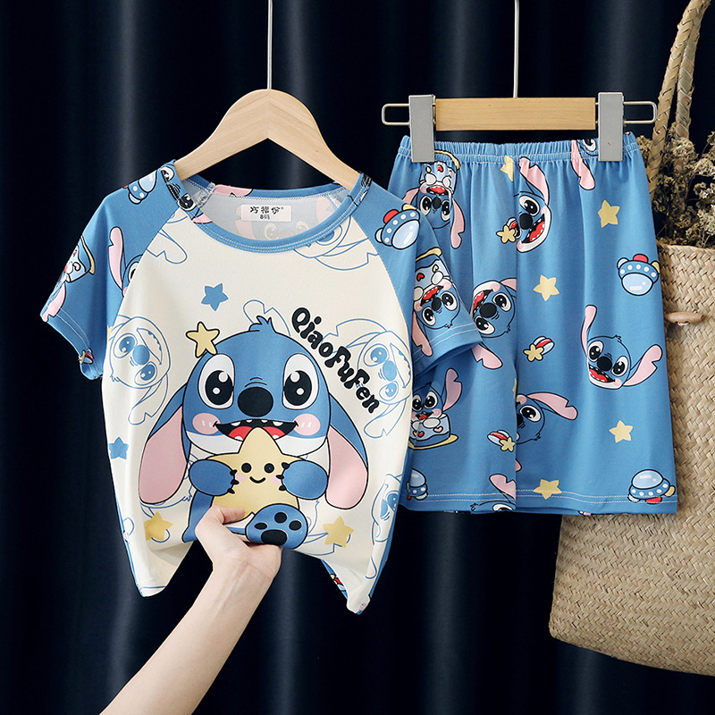 어린이와 소녀를위한 잠옷 여름 남자를위한 반소매 에어컨 옷 얇은 만화 중간 크기의 큰 어린이와 아기 홈 옷 세트스토어 가기