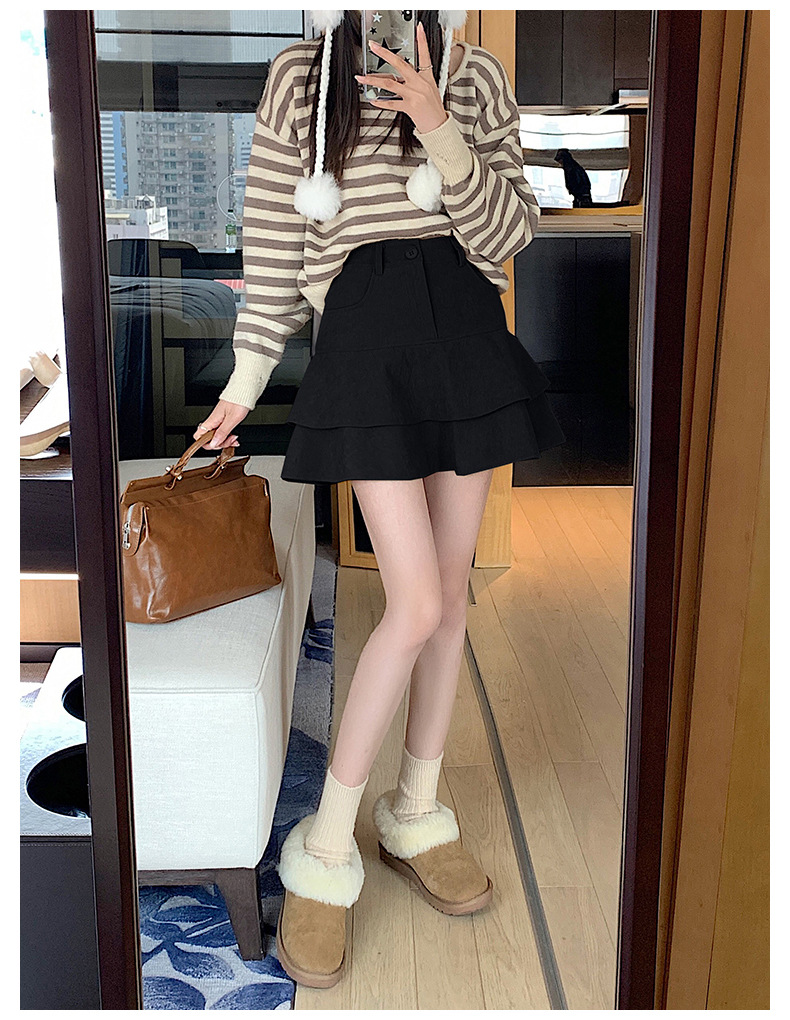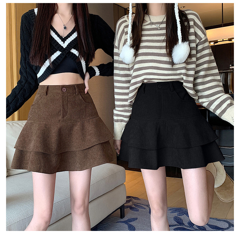 2024 가을/겨울 다크 브라운 스커트 여자 코듀로이 스커트 작은 올 매치 하이 웨이스트 슬리밍 A 라인 스커트 스커트스토어 가기