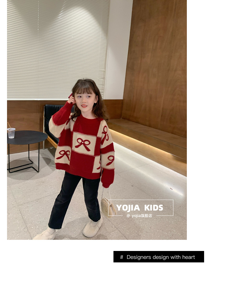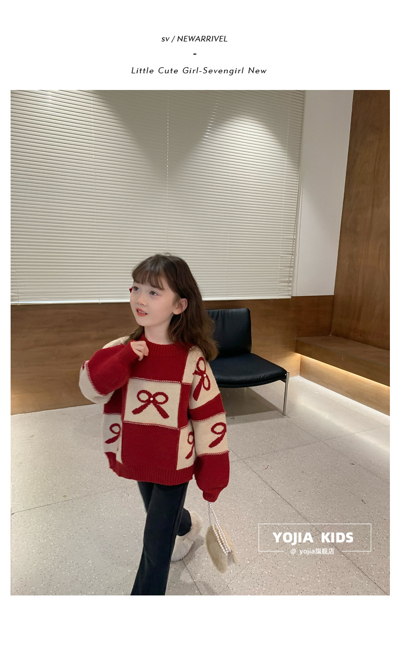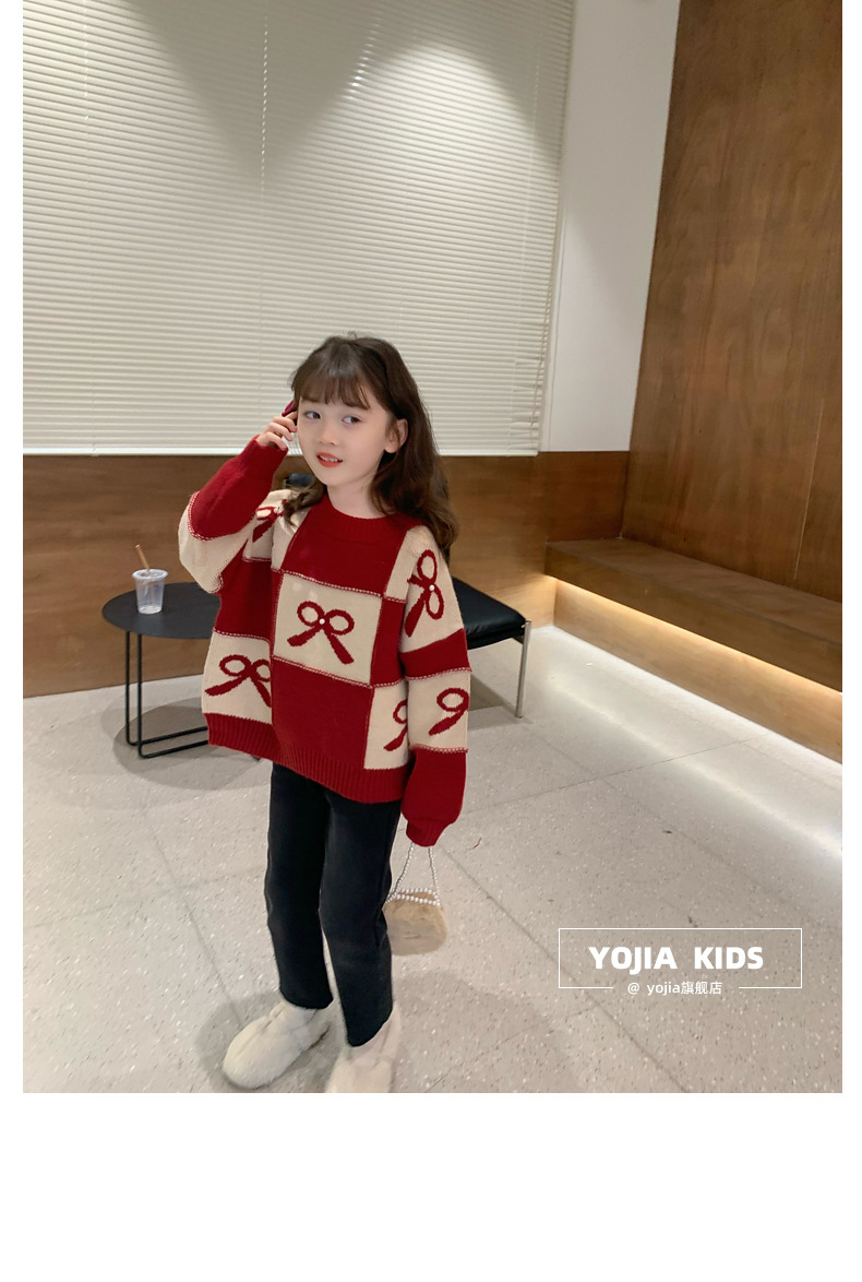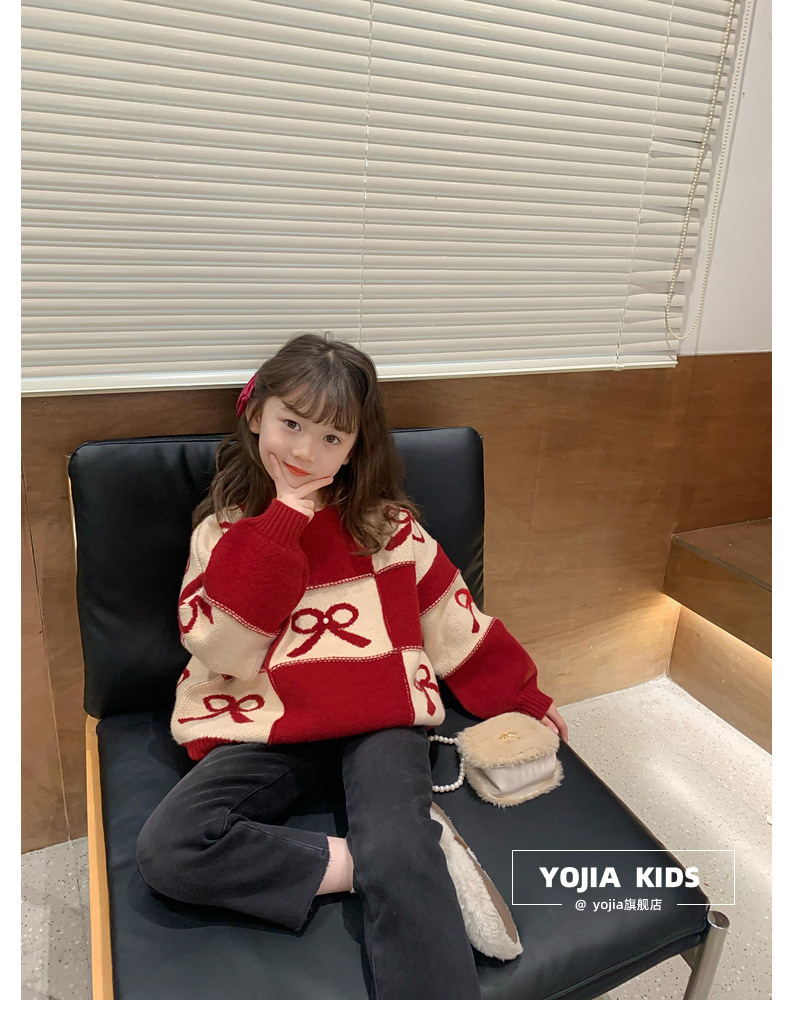 소녀 레드 스웨터 2024 가을과 겨울 새로운 스타일 서양식 어린이 니트웨어 아동복 크리스마스 해피 뉴 이어 스웨터 아동복스토어 가기