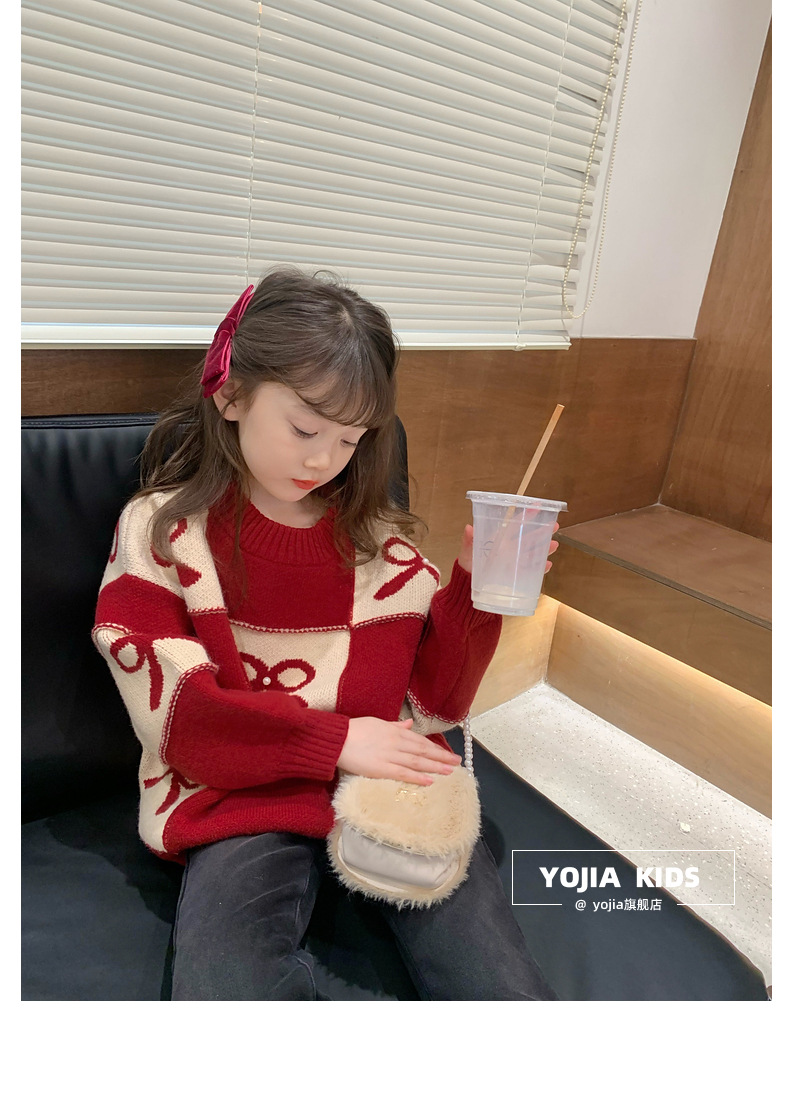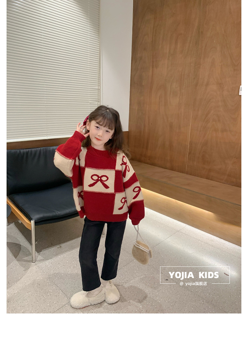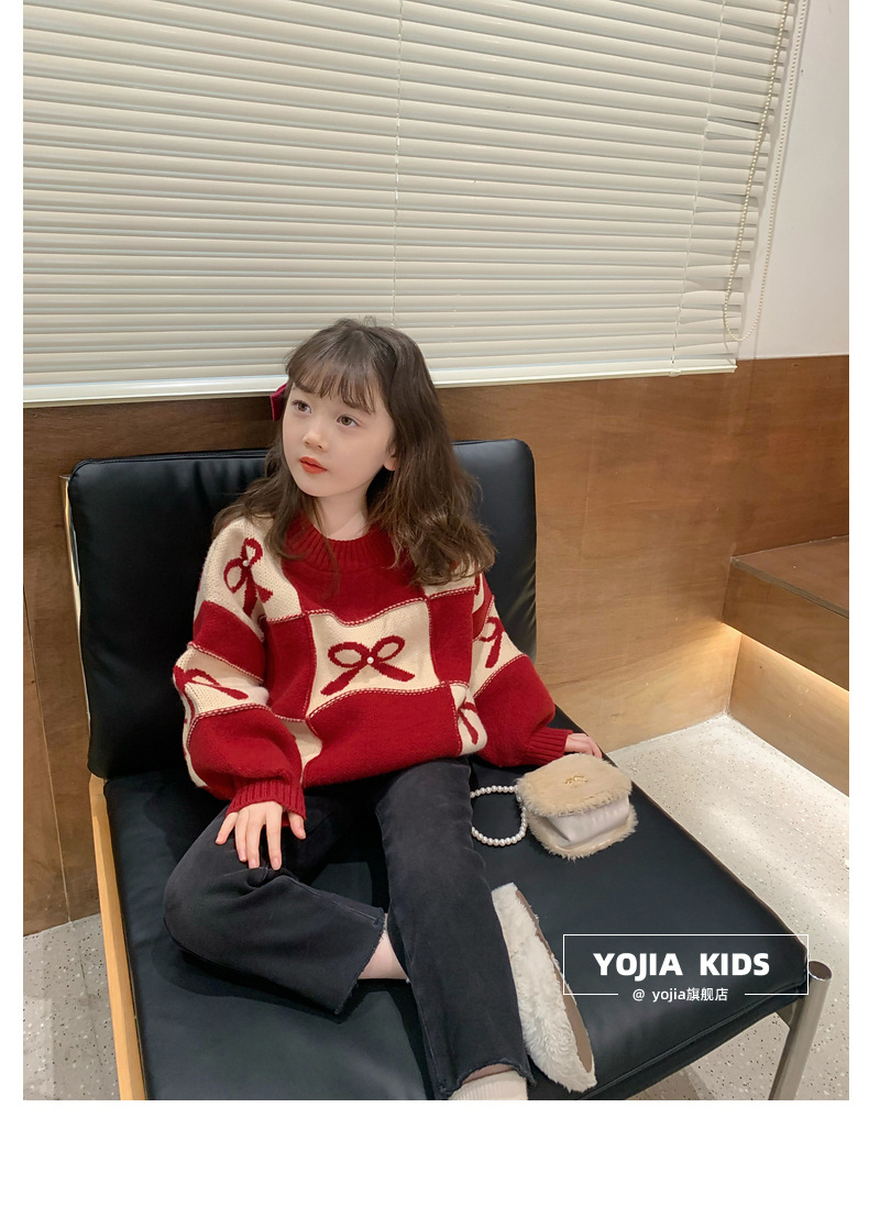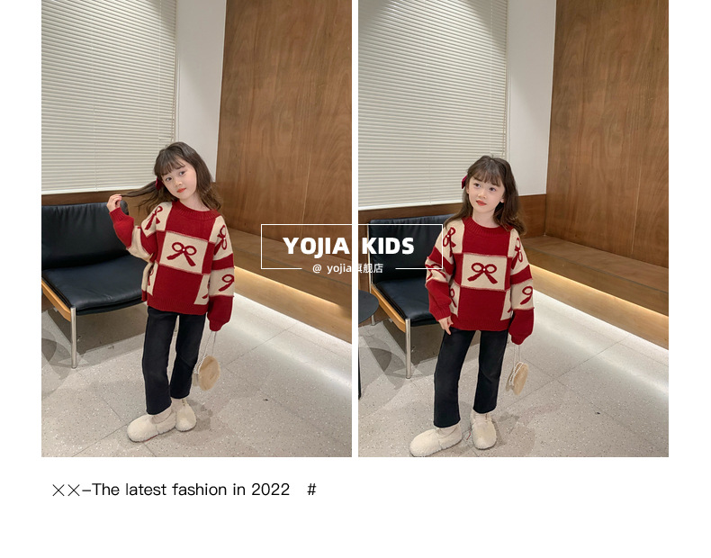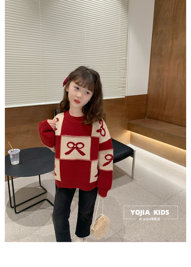 소녀 레드 스웨터 2024 가을과 겨울 새로운 스타일 서양식 어린이 니트웨어 아동복 크리스마스 해피 뉴 이어 스웨터 아동복스토어 가기