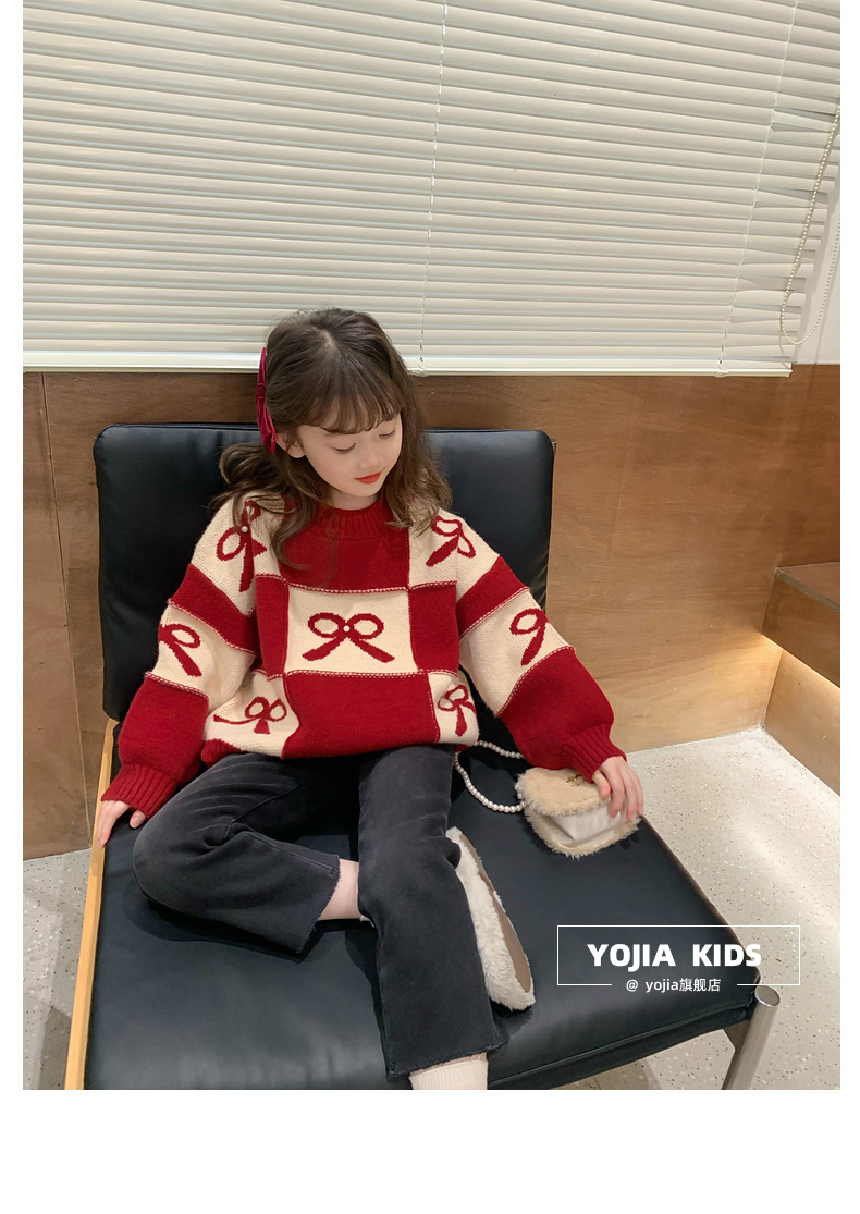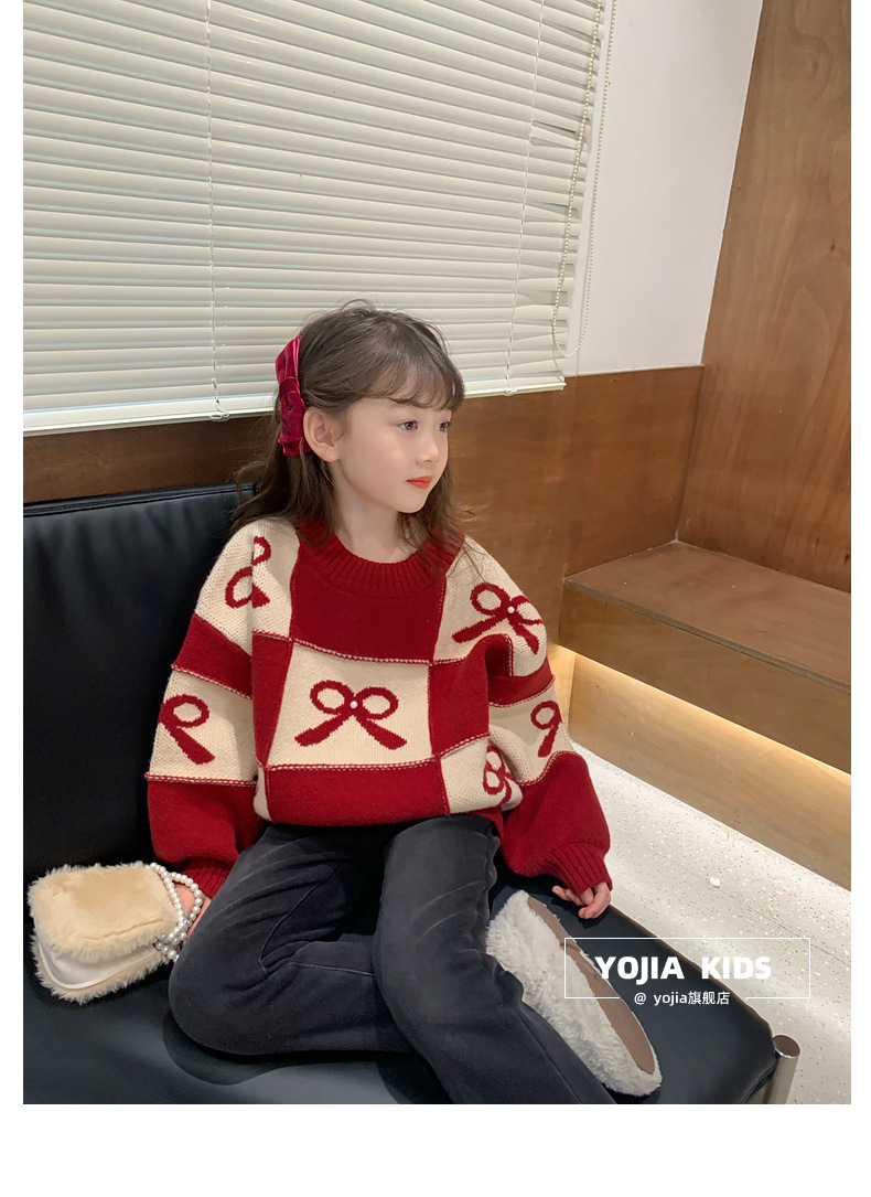 소녀 레드 스웨터 2024 가을과 겨울 새로운 스타일 서양식 어린이 니트웨어 아동복 크리스마스 해피 뉴 이어 스웨터 아동복