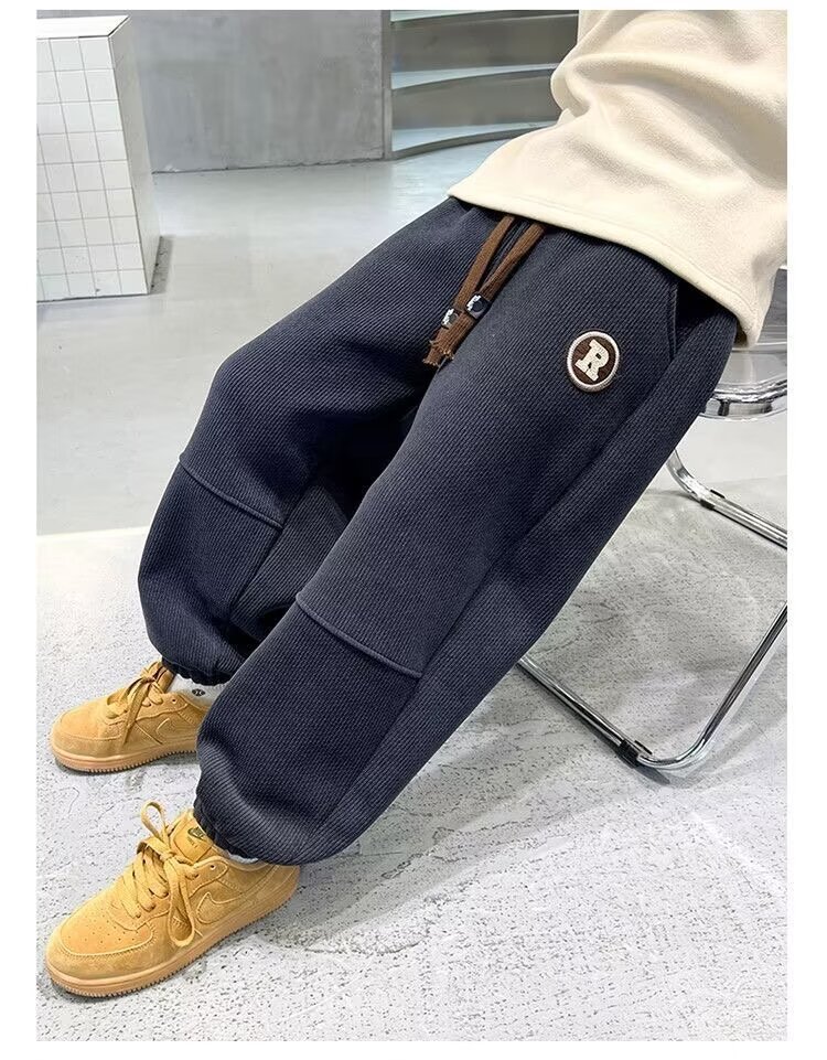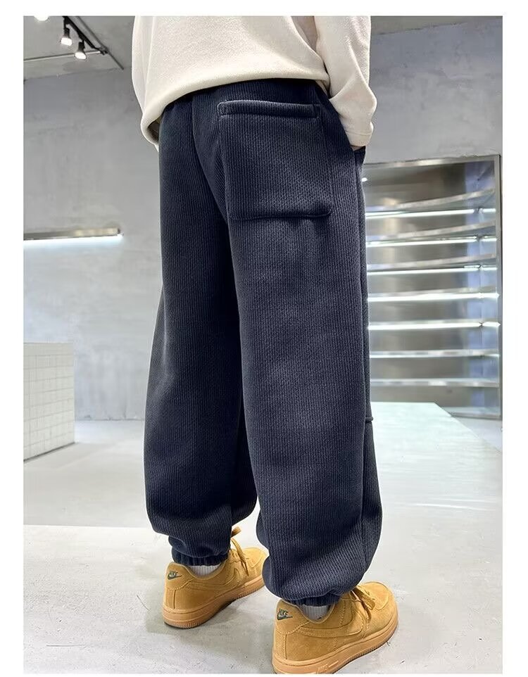 남자들의 겨울 캐시미어 바지 가을과 겨울 2024 새로운 어린이 면화 스포츠 바지 원피스 캐시미어 대형 어린이 두꺼운 운동복