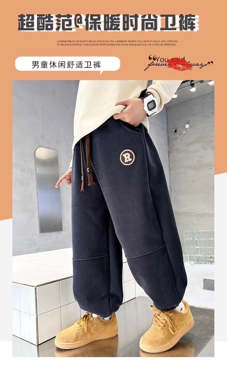 남자들의 겨울 캐시미어 바지 가을과 겨울 2024 새로운 어린이 면화 스포츠 바지 원피스 캐시미어 대형 어린이 두꺼운 운동복스토어 가기