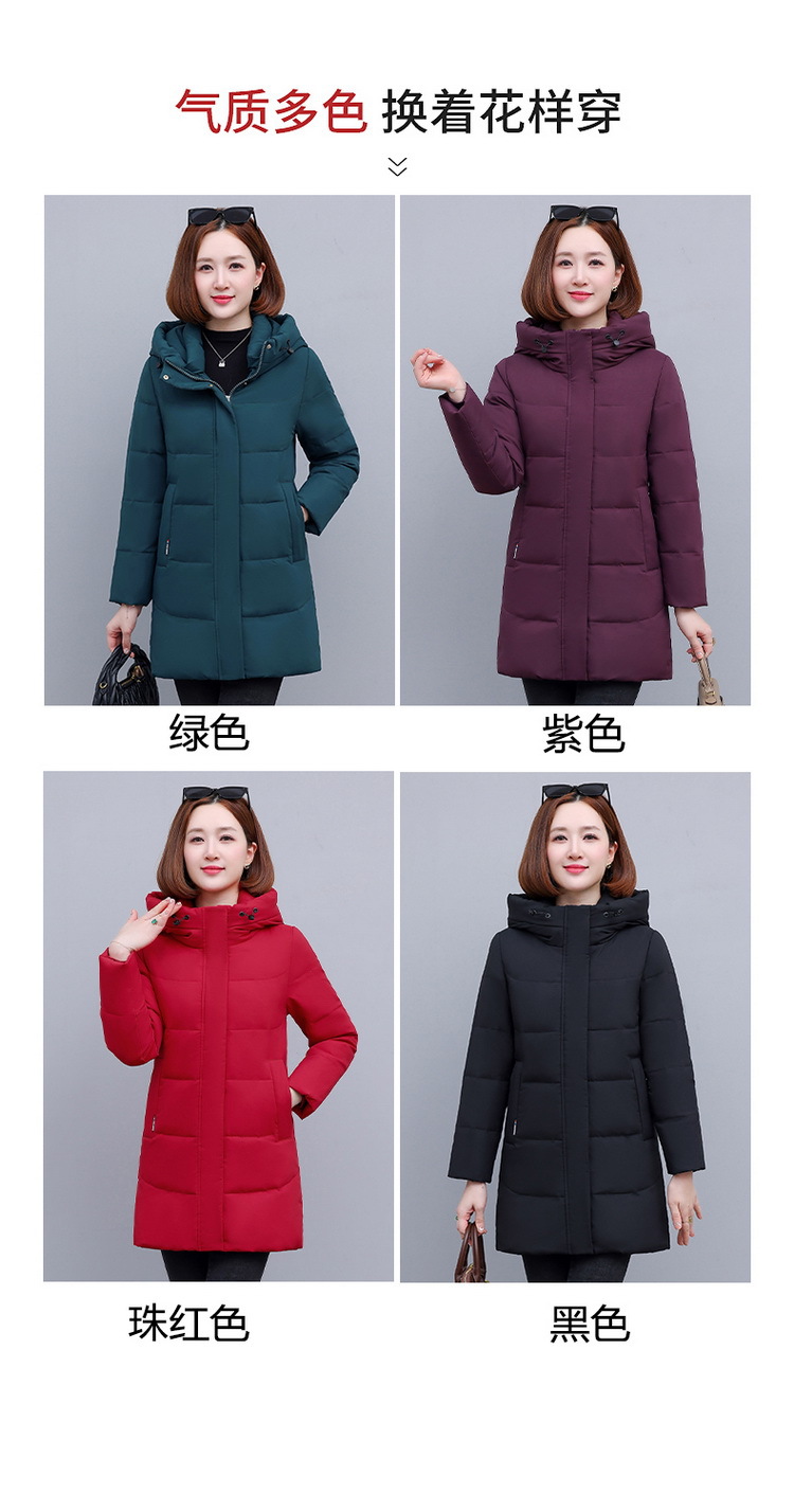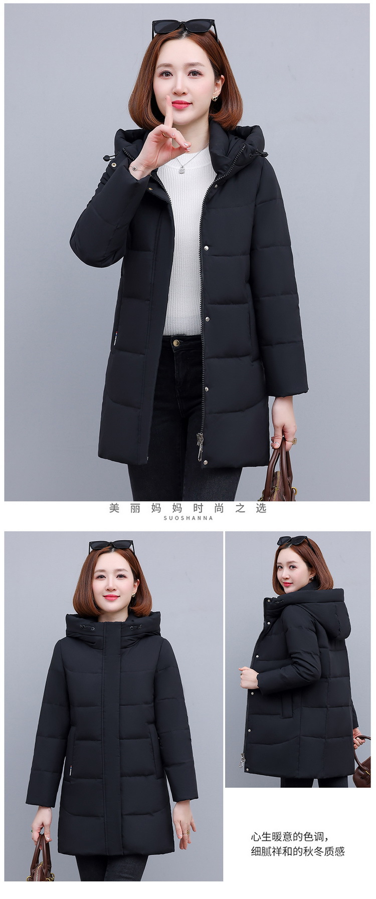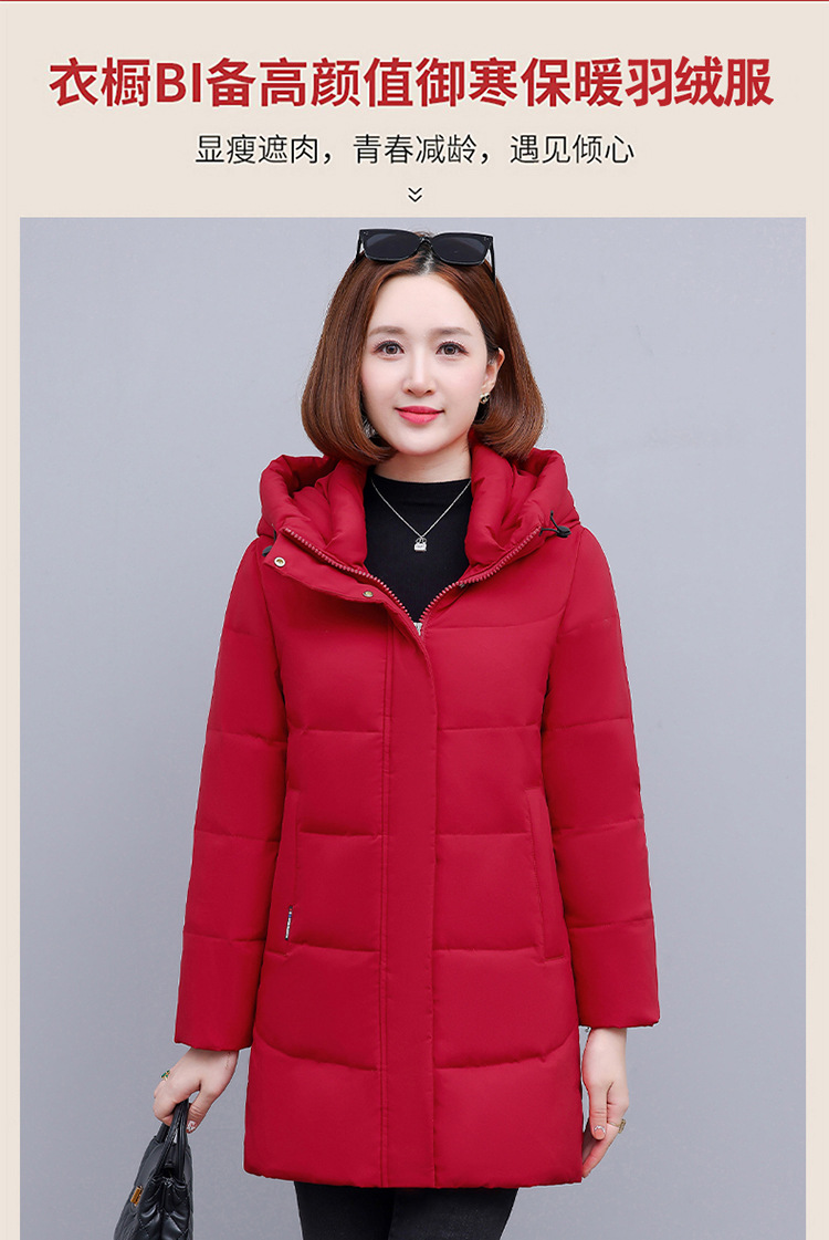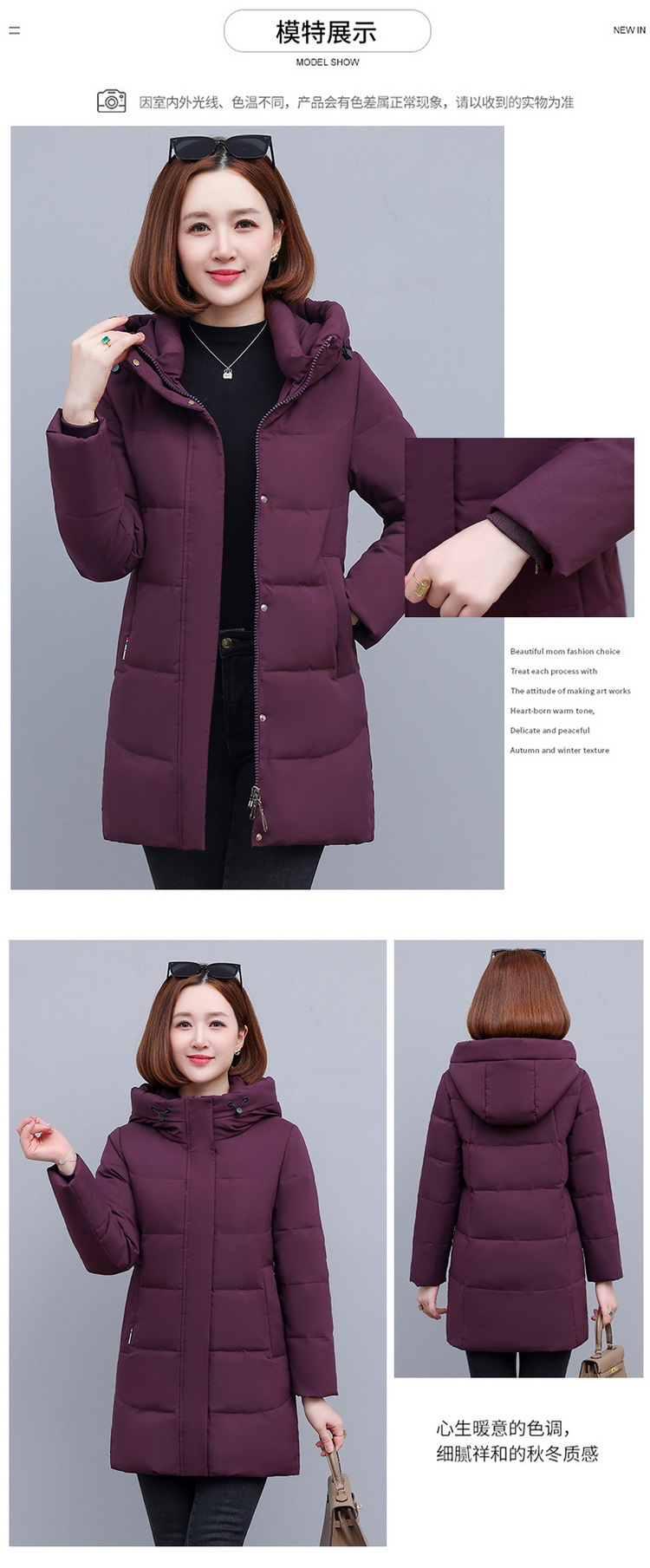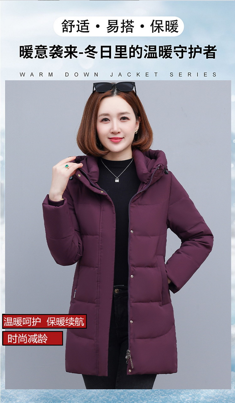 중년 어머니를위한 카운터 2024 겨울 오리 다운 재킷 캐주얼 슬리밍 올 매치 후드 중간 길이의 여성 의류스토어 가기