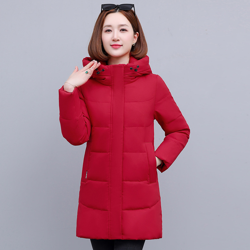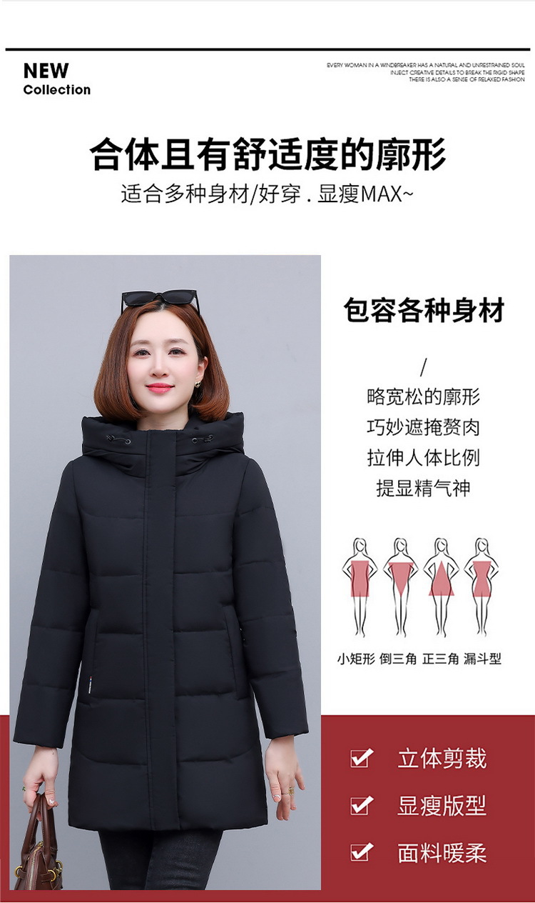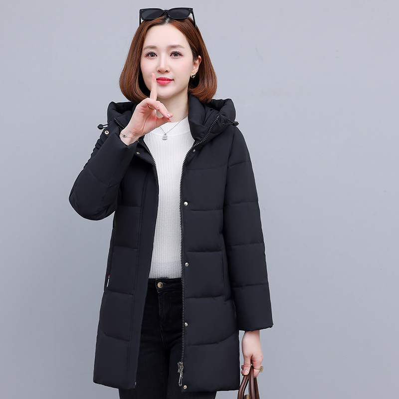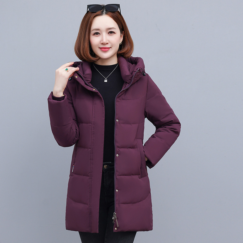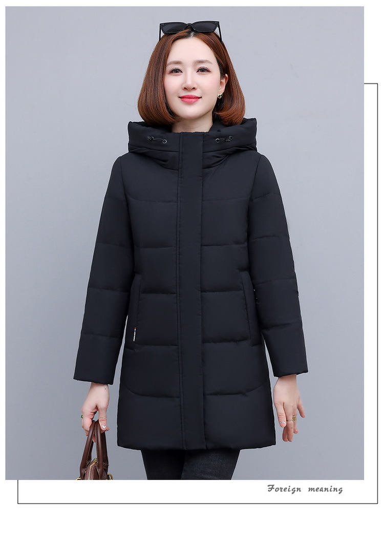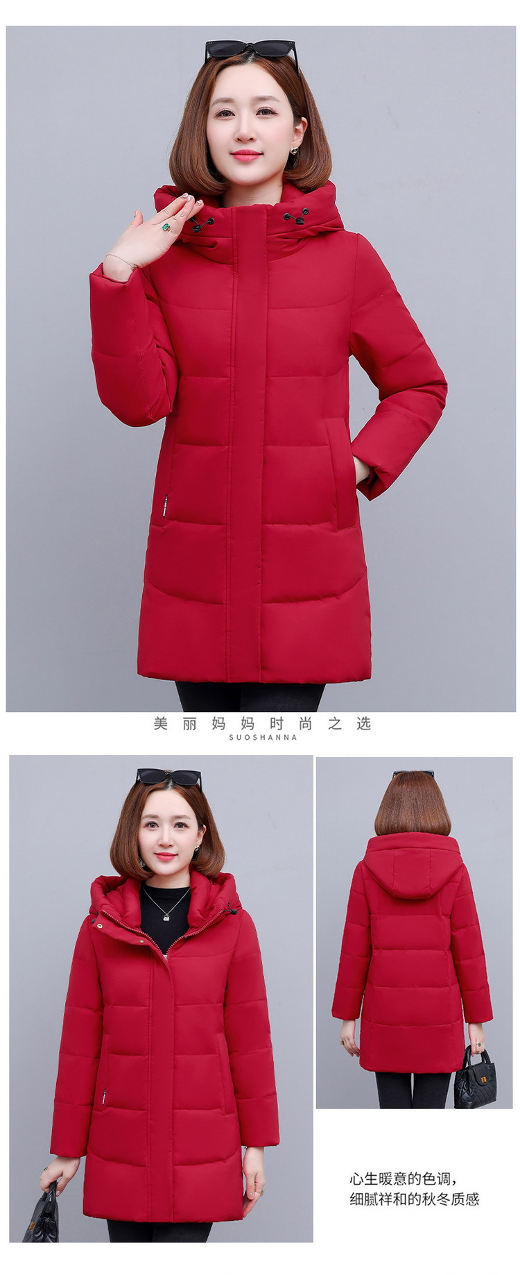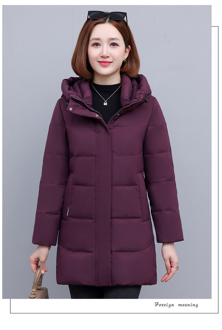 중년 어머니를위한 카운터 2024 겨울 오리 다운 재킷 캐주얼 슬리밍 올 매치 후드 중간 길이의 여성 의류스토어 가기